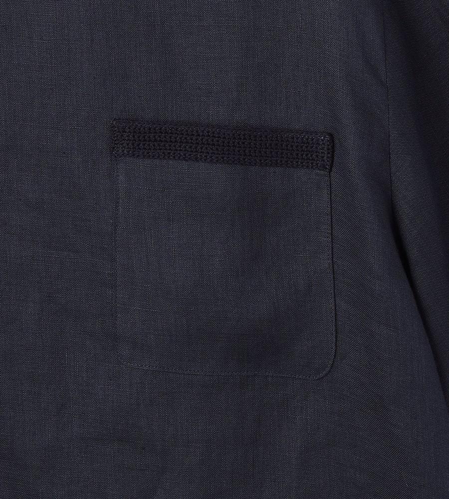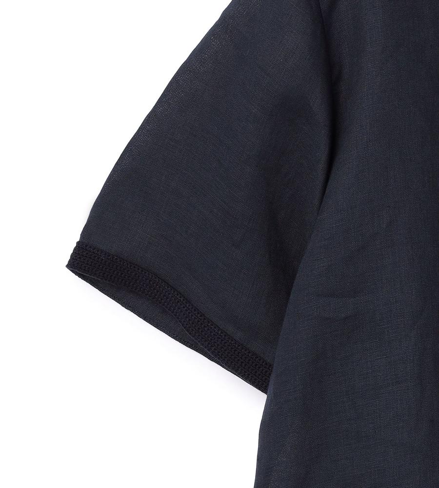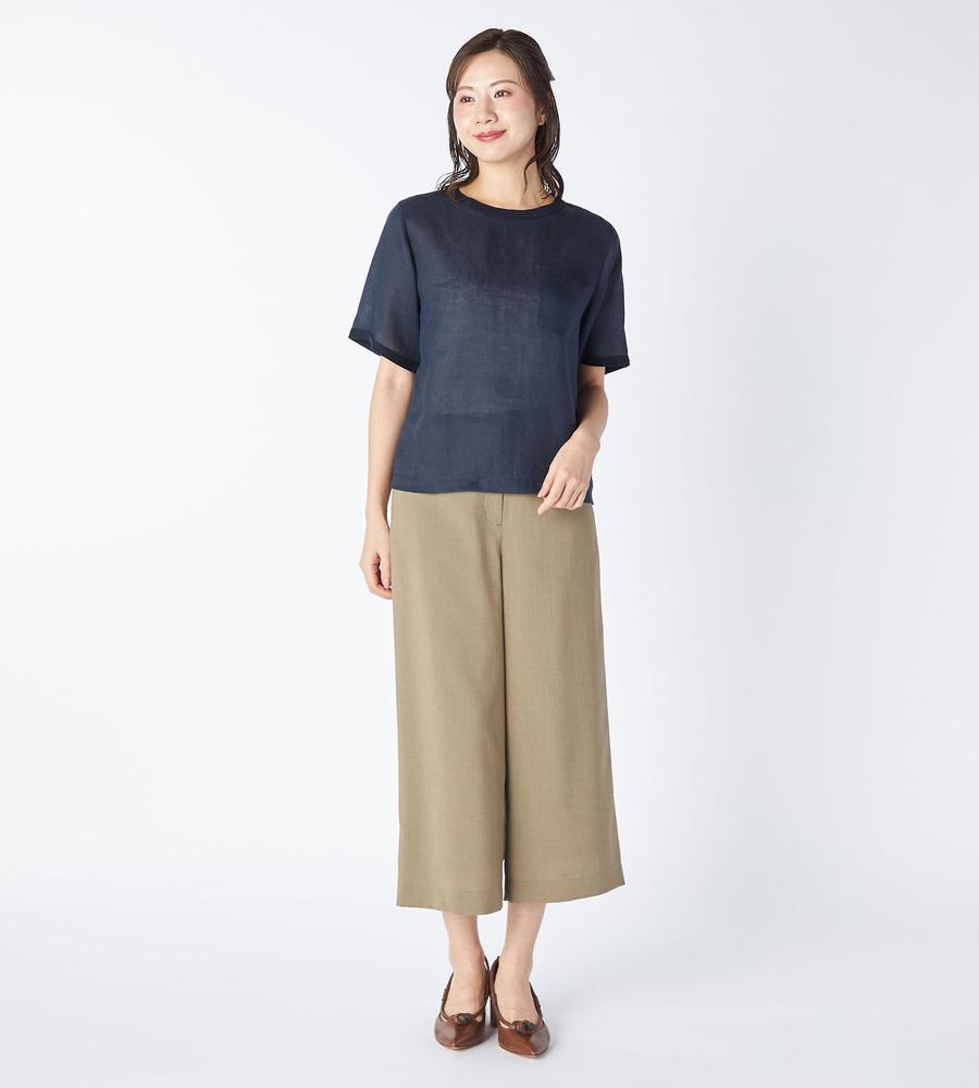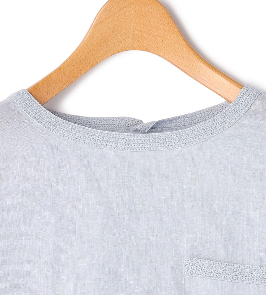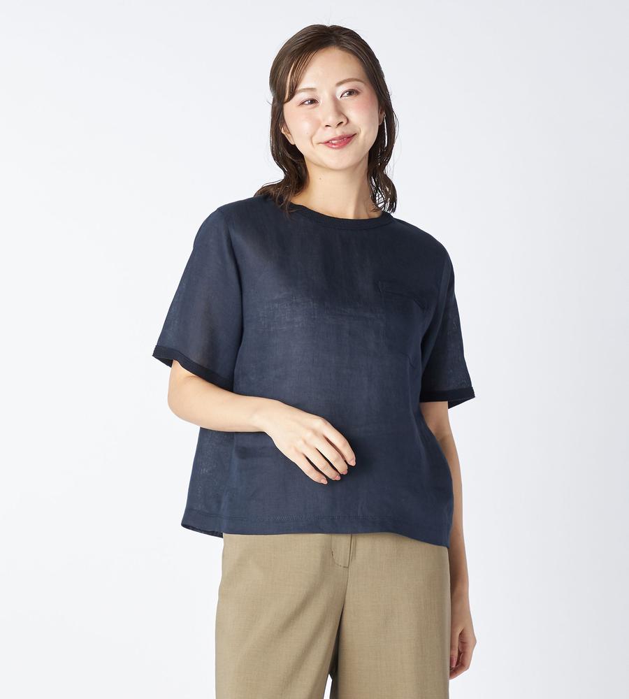 夏の着こなしに心地よさをもたらす麻素材を用いたプルオーバー。リラックス感のあるシルエットながらも軽やかなハリのある素材で、着こなしに品位をもたらす1点です。胸元に添えたポケットや、袖口や襟元に配したニットのトリミングがカジュアルなアクセント。仄かな透け感があり、大人らしい色香も漂わせるアイテムです。