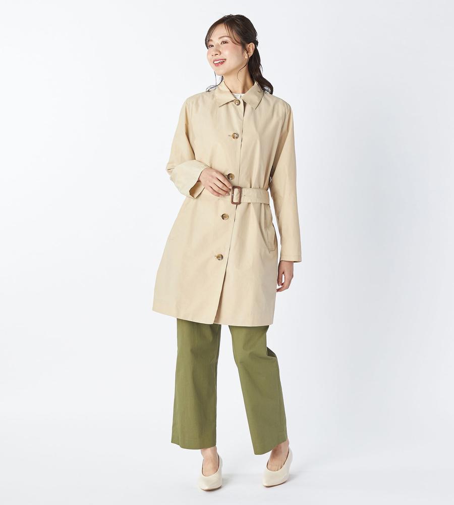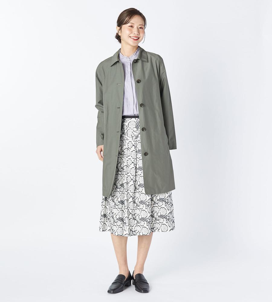 上質かつベーシックなステンカラーコート。ハリのあるコットンベース素材で、春先から秋口まで季節の変わり目の体温調節にぴったりな1着です。軽やかなミディ丈のスプリングコートは、スカート・パンツどちらともグッドバランスに着こなせます。トレンドに左右されることなく長くご愛用いただける1着。