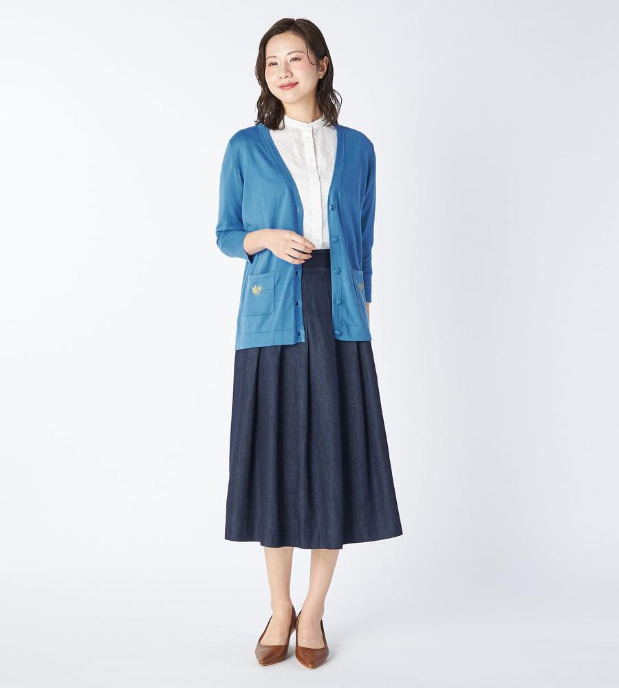 ワードローブにそろえておきたい定番のVネックカーディガンです。腰までかくれる長めの着丈、袖は手首がのぞく9分丈にすることでほど良い肌見せの抜け感をプラスしました。ポケットにはミモザ刺繍で可愛らしいアクセントをプラス、ロングシーズン着まわししやすい薄手のコットンニット仕立てです。