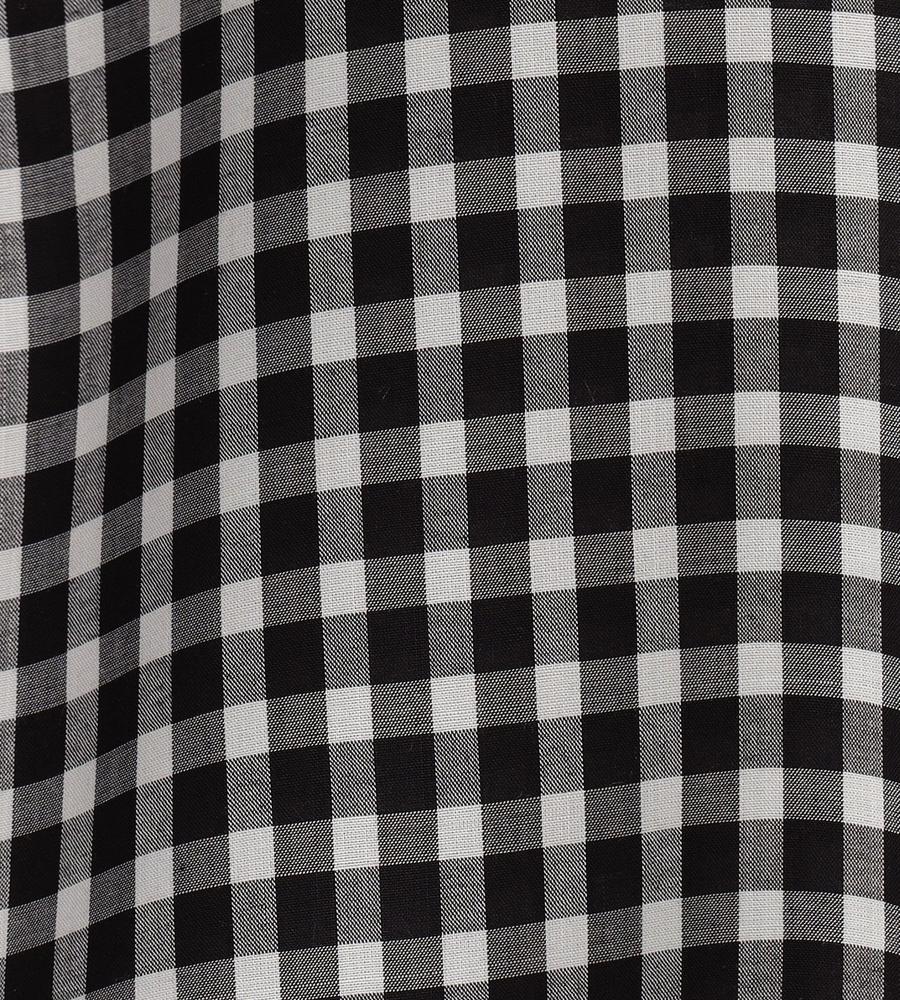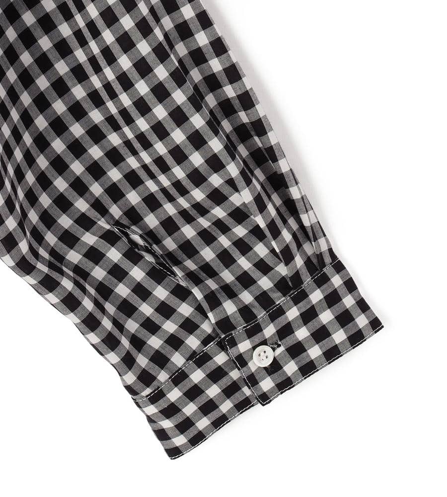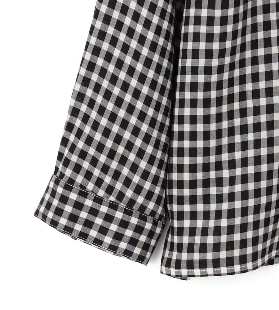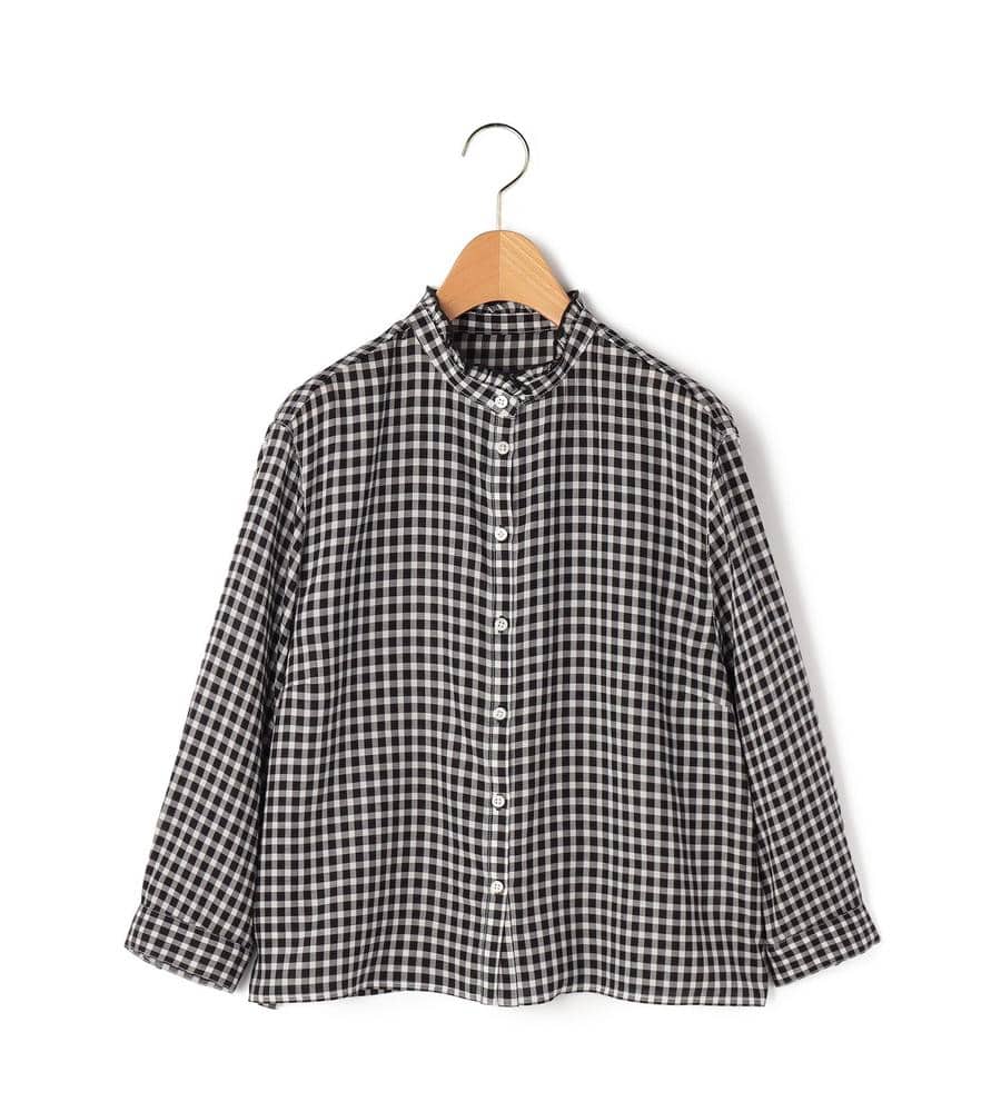 ギンガムチェック柄の7分袖スタンドカラーブラウス。襟にはフリルのあしらいがエレガントなデザインポイント。様々なボトムと着こなしやすいストレートカットの裾。スタイリングのアクセントになるおしゃれなデザインで、お出かけコーディネートにぴったり。ウォッシャブル仕様で自宅でお手入れできるのもうれしいポイントです。