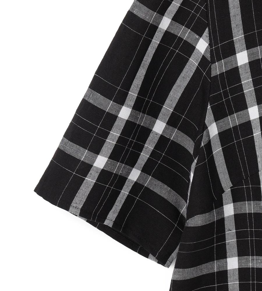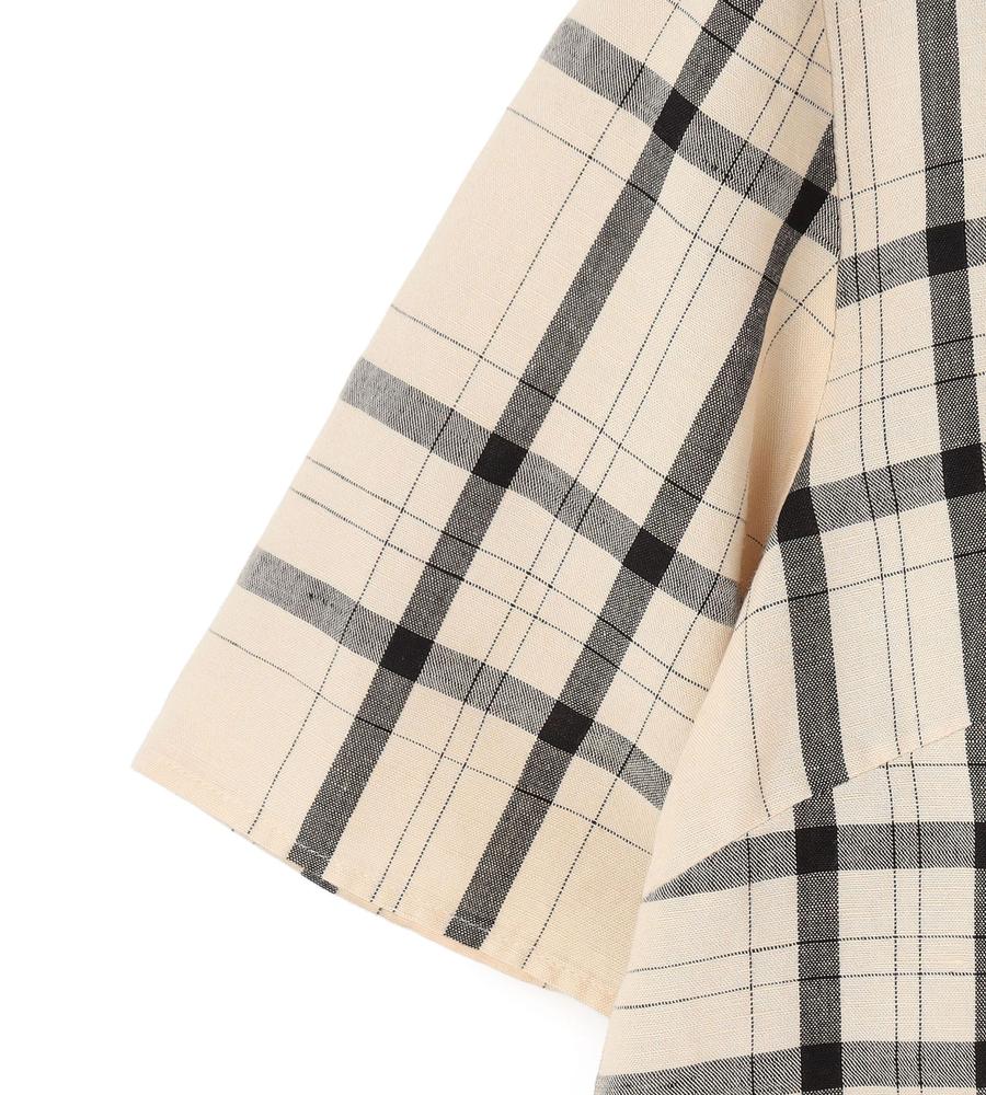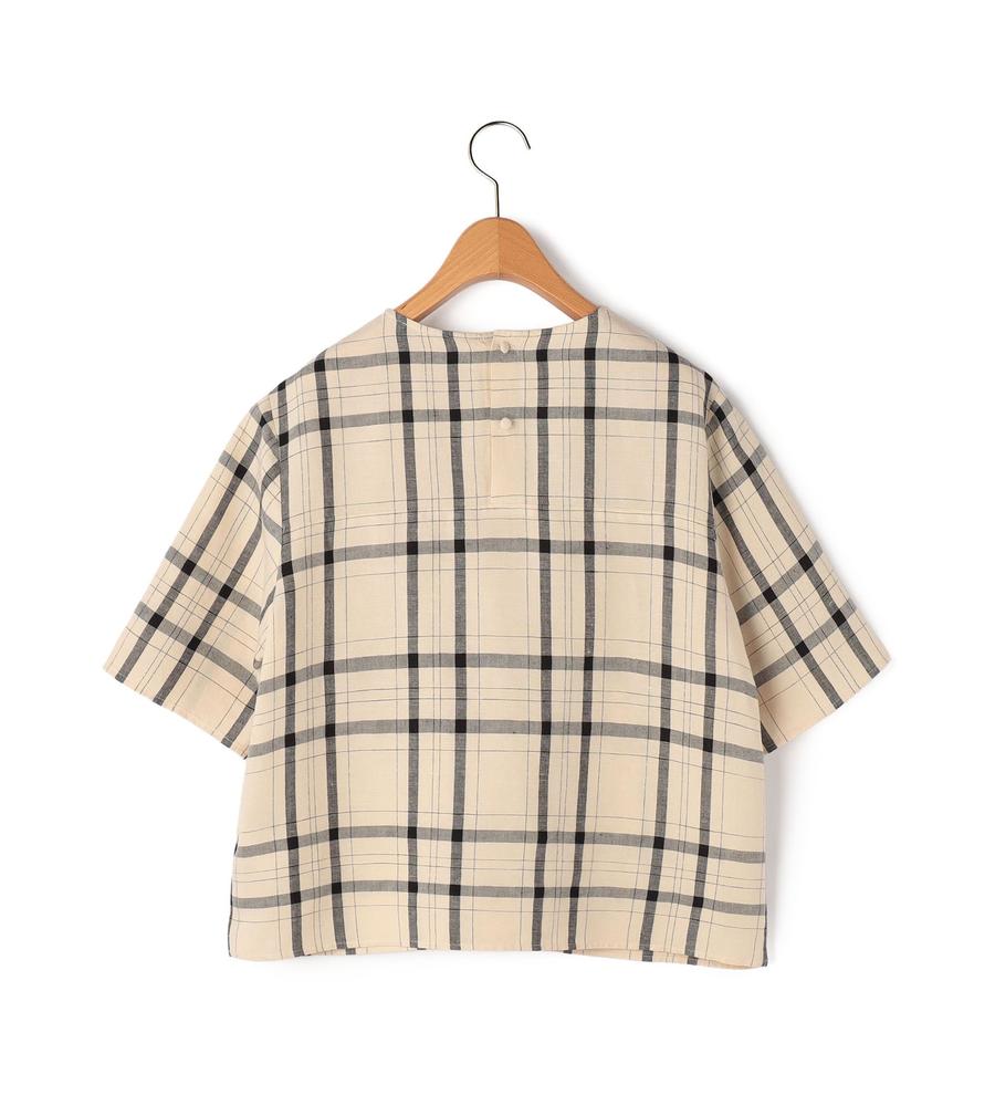 チャック柄がエレガントなデザインの半袖ブラウス。さらっとした肌触りの涼やかな生地感が春夏シーズンに最適。ゆとりがありながらバスト部分にダーツを入れた立体的なシルエット。くるみボタンを背中に配したスッキリとしたフロントデザイン。おしゃれなお出かけコーディネートが実現するアイテムです。
