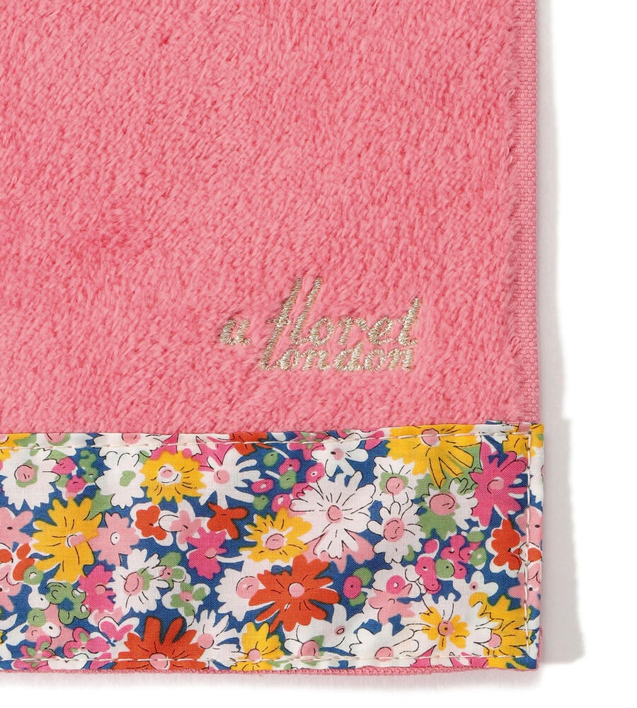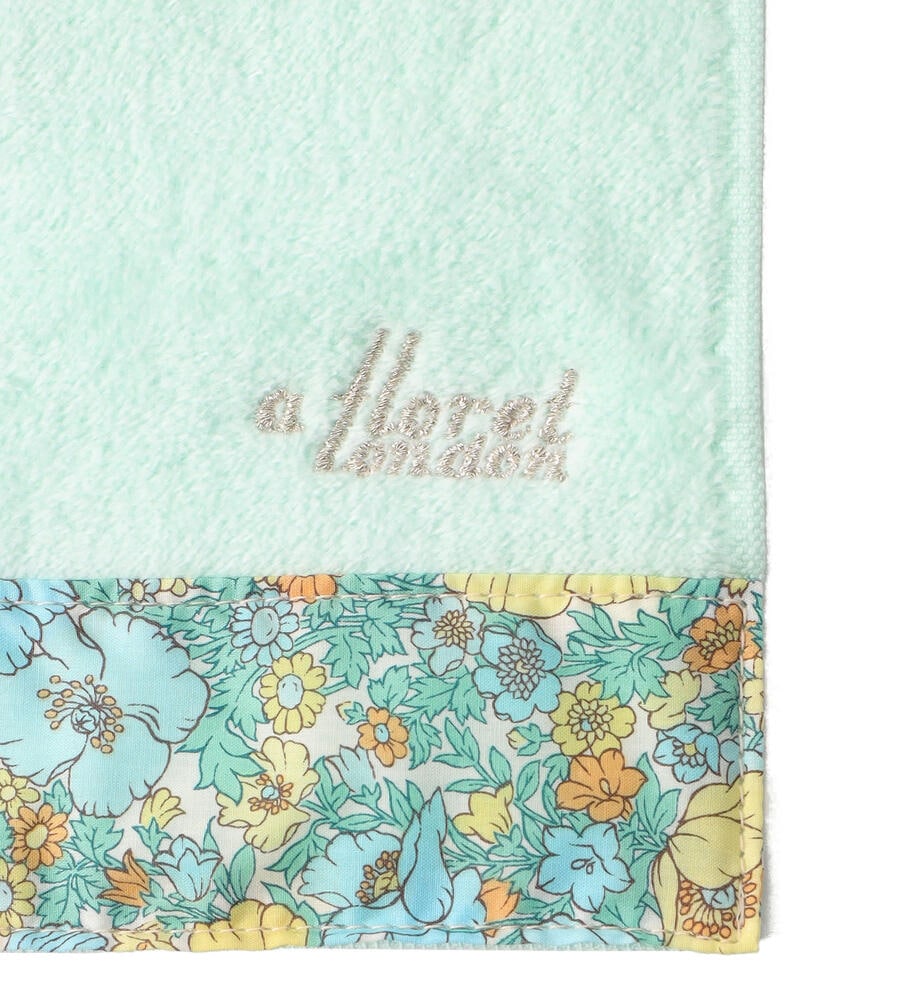 リバティプリント生地とタオル生地をドッキングしたミニタオル。フラワーモチーフの華やかなリバティ柄とロゴ刺繍のアクセントがフェミニンなデザイン。使う頻度の多い方でも安心感のある吸収性の高い便利なタオル生地。バッグの中に入れて持ち運びやすい、ハンドサイズのサイズ感でデイリーに活躍します。