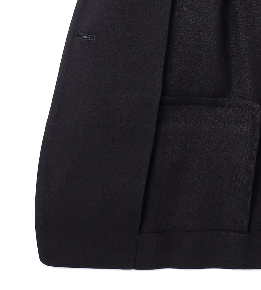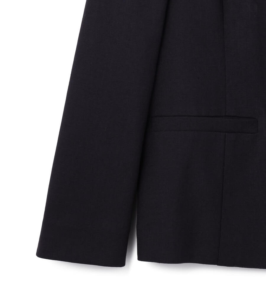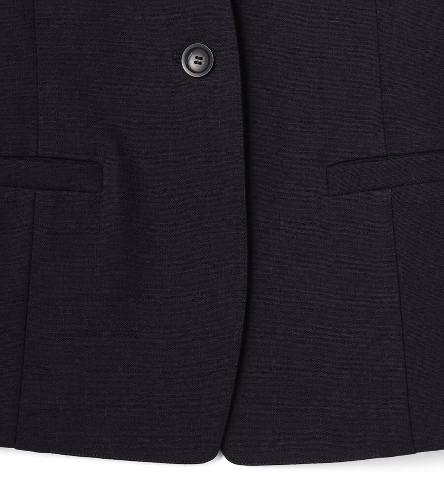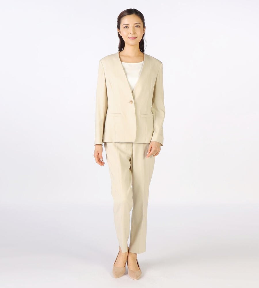 襟のないすっきりとしたノーカラーのシルエットが印象的な一つボタンジャケット。ストレッチ素材で、身体の動きにフィットしストレスフリーな着心地なのもうれしいポイント。シンプルかつエレガントなデザインで、合わせやすく汎用性抜群。お出かけからビジネスシーンまで幅広く活躍するアイテムです。
