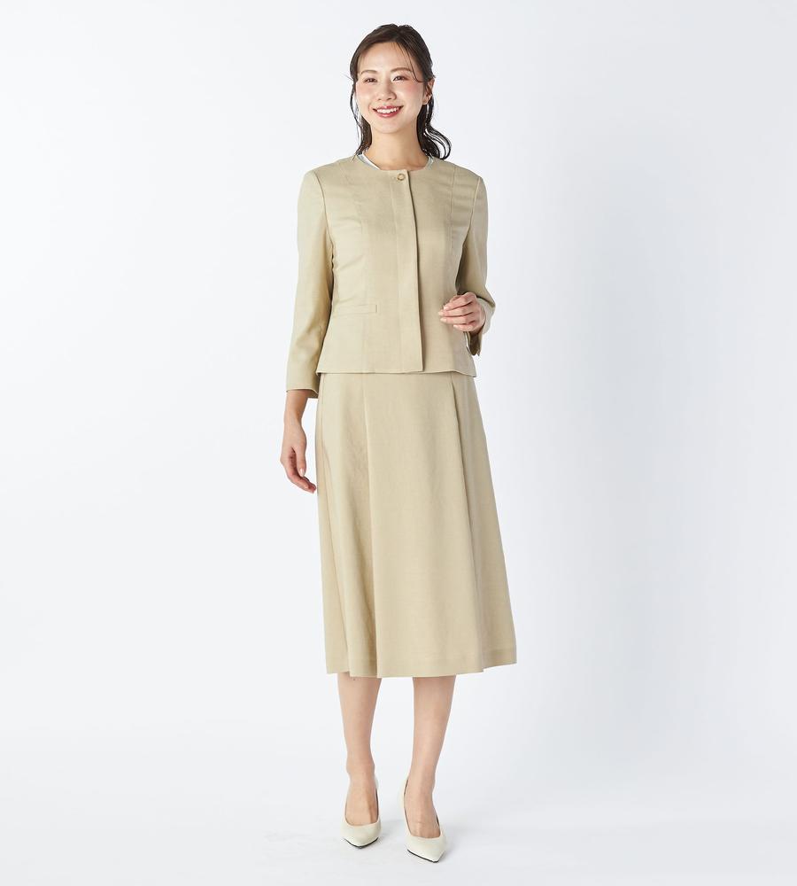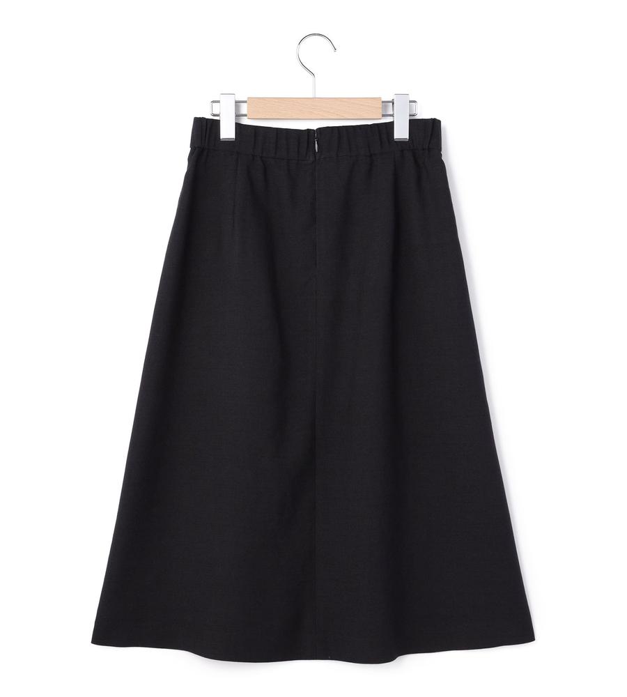 フロントのプリーツがエレガントなデザインのミディ丈スカート。自然なドレープ感がフェミニンなシルエット。便利なサイドポケット付き。後ろウエストはゴム仕様、ストレッチ素材の生地で身体の動きにフィットし、快適な着心地なのもうれしいポイント。お出かけにはもちろん、フォーマルなシーンにもマッチするシックな一枚です。