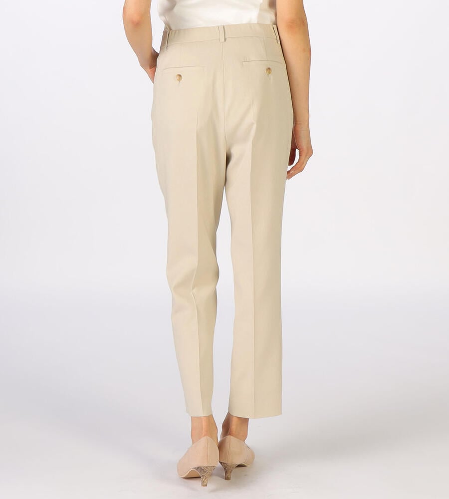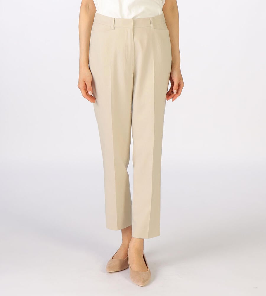 シンプルなストレートシルエットのパンツ。センタープレス入りで、エレガントできちんと感のあるデザイン。足首のみえるアンクル丈で軽やかなムードを演出。ストレッチ素材で、身体の動きにフィットしストレスフリーなはき心地なのもポイント。お出かけからビジネスシーンまで幅広く活躍するアイテムです。