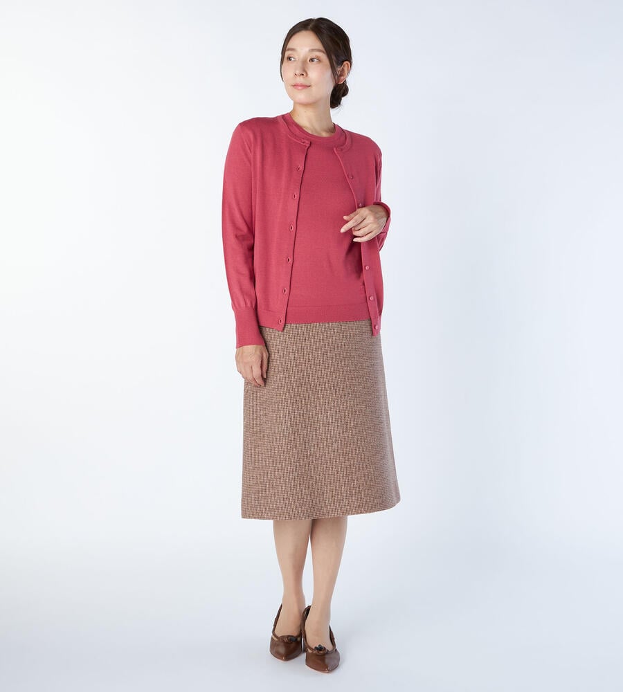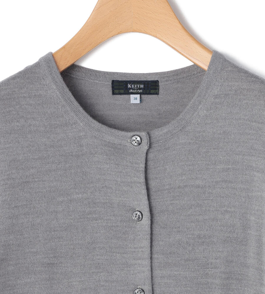 ウールにアクリルを織り交ぜた、しっとりとした落ち感が美しいハイゲージニットのカーディガン。秋冬の着こなしにしっくりと馴染むカラーバリエーションで揃っています。ラウンドネックを採用し、ノーカラージャケットのような気品を備えた仕上がり。袖のリブが長く、手元を綺麗に映し出すのも特徴です。