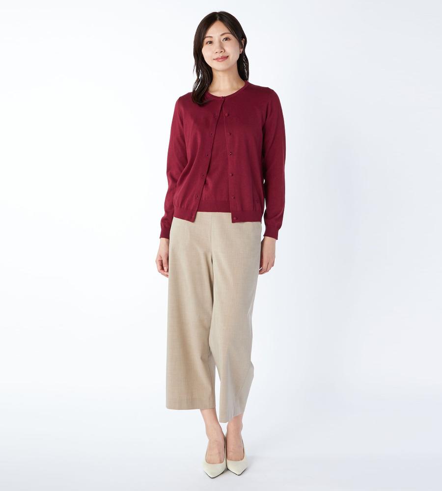 秋冬シーズンらしいシックな色味のニットカーディガン。ラウンドネックや短めの丈感のコンパクトなシルエットがフェミニンを印象付けます。ハイゲージで編み立てており、なめらかな表面感やソフトな風合いも魅力です。お揃いのプルオーバーと合わせて統一感を出すと、お出かけやお呼ばれにも活躍します。