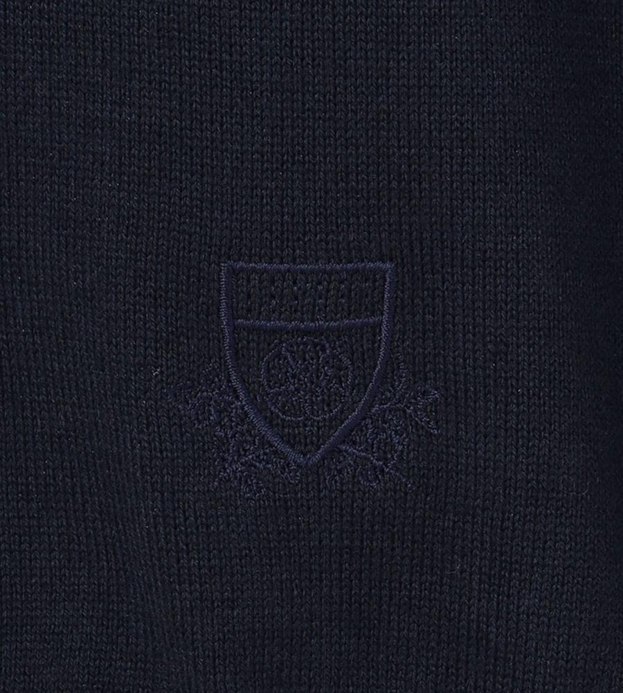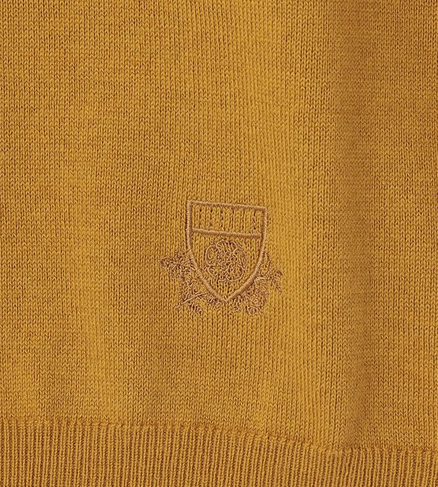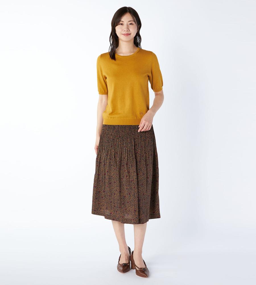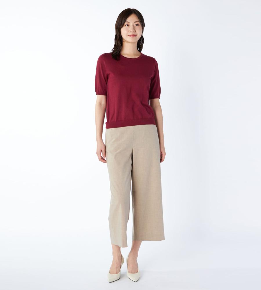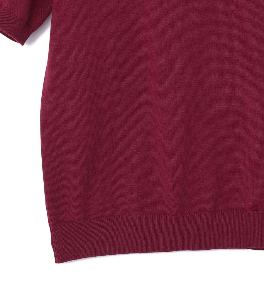使い勝手が良いベーシックなデザインのニットプルオーバー。インナーとしても重宝する半袖です。左前裾にあしらったマークの刺繍がさりげないワンポイント。ハイゲージでなめらかな表面感に編み立てています。お揃いのカーディガンと合わせて統一感を出すと、お出かけコーディネートにもぴったりです。