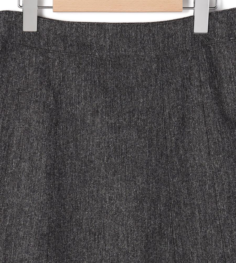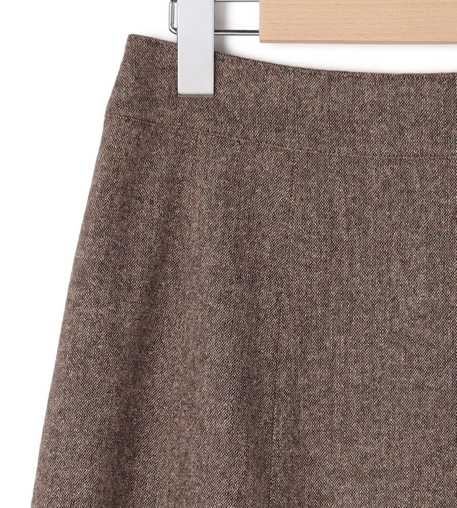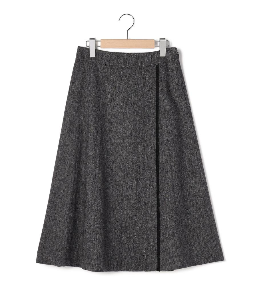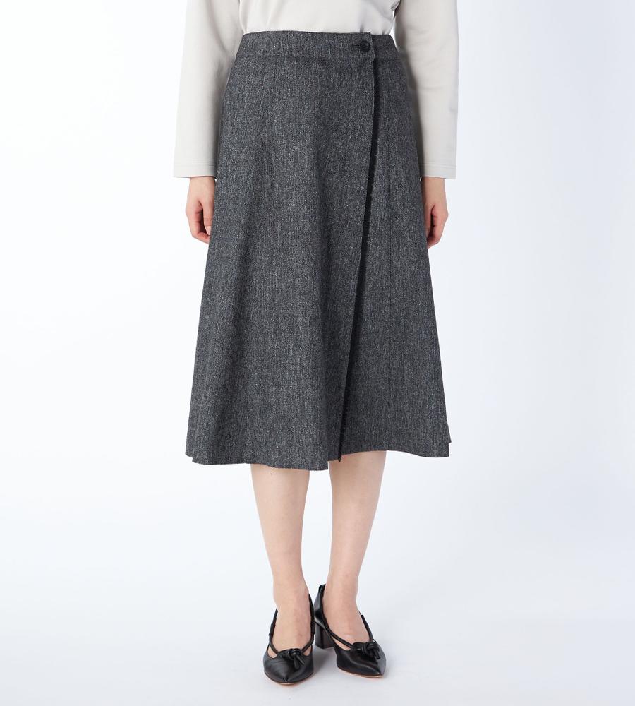 ツィード生地で仕立てたエレガントでシックなムードのミディ丈スカート。フロントの巻きスカート風デザインと端のフリンジのあしらいがスタイリッシュデザインアクセント。裾に向かってフレアに広がるシルエットがフェミニンなシルエット。おしゃれな秋冬お出かけコーディネートが完成するアイテムです。