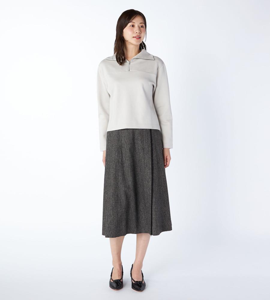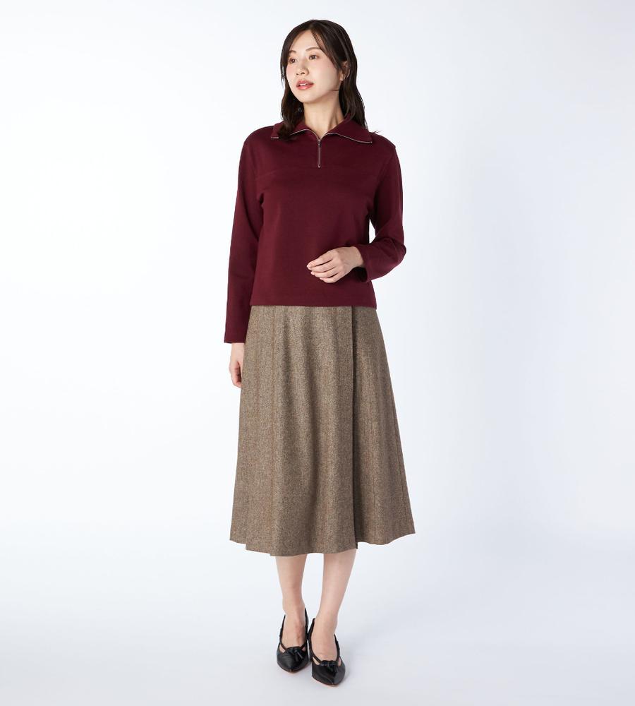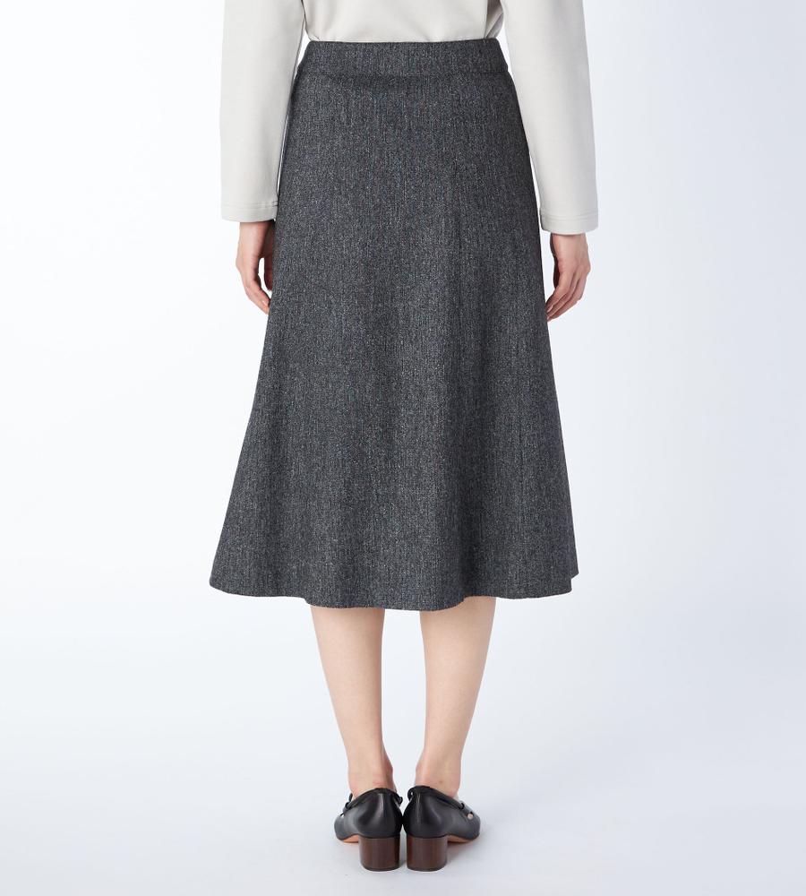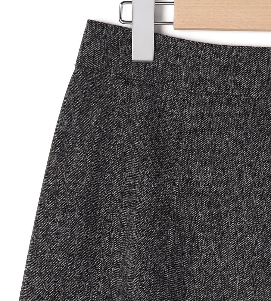 ツィード生地で仕立てたエレガントでシックなムードのミディ丈スカート。フロントの巻きスカート風デザインと端のフリンジのあしらいがスタイリッシュデザインアクセント。裾に向かってフレアに広がるシルエットがフェミニンなシルエット。おしゃれな秋冬お出かけコーディネートが完成するアイテムです。