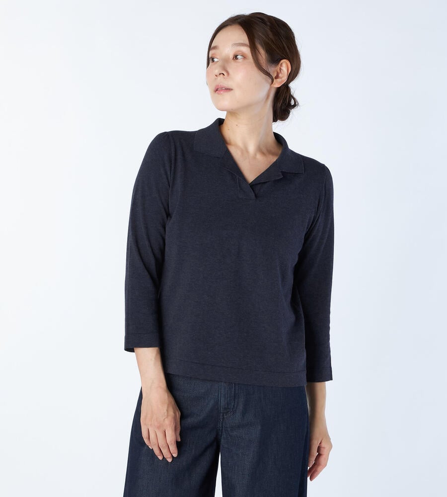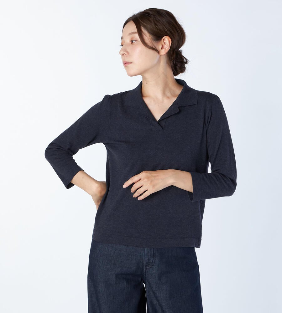 コットン素材で仕立てた軽やかなムード長袖ニット。開襟衿がデザインポイント。シンプル&スタンダードなデザインで、ボトムを選ばず毎日の着こなしで活躍します。カジュアルアイテムながら、適度にきちんと感もある、大人カジュアルにぴったりな一枚。デイリーに活躍する、汎用性の高いアイテムです。
