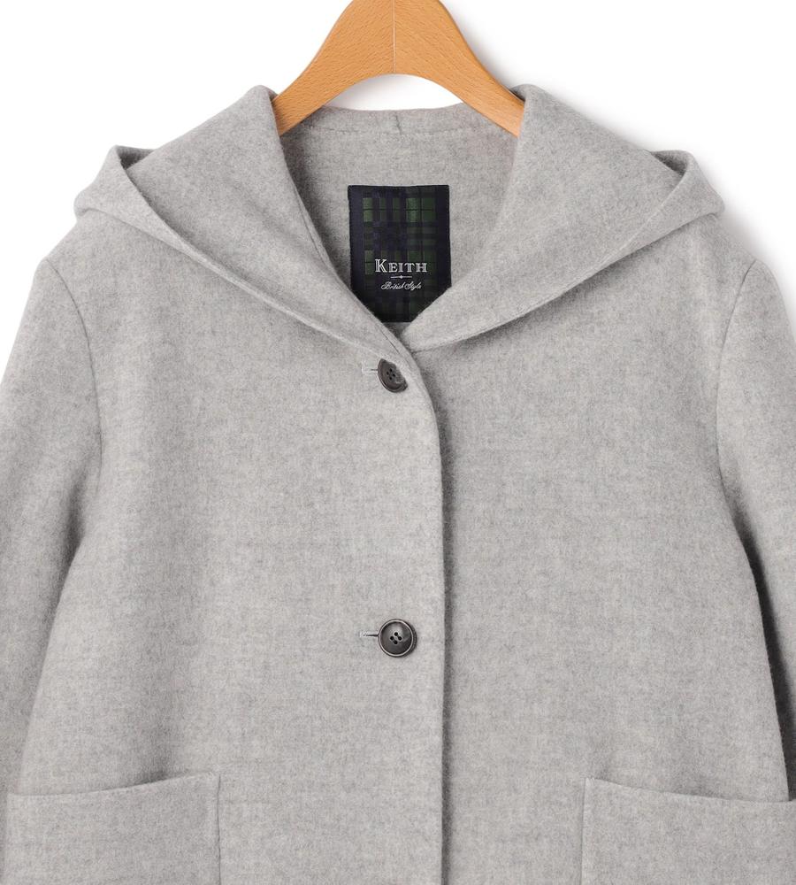 ソフトメルトンのショートコート。バックスタイルを印象づけるフードと、大きなフロントのパッチポケットがポイントのデザインです。一重仕立てによる軽やかさで、冬アウター特有の重さを解消。インナーに合わせるアイテムとの組み合わせで、しっかりと暖かさも実感できます。チェック柄のマフラーに合わせた、トラッドなスタイリングがおすすめです。
