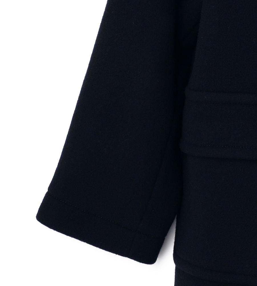 シンプルかつスタンダードなデザインでスタイリングに便利なダッフルコート。フェルトのようにやわらかで滑らかな肌触りのメルトン仕上げをした保温性にすぐれた生地で、秋冬シーズンにぴったりな生地感。便利な大きめフラップポケット付き。おしゃれなお出かけコーディネートが実現するアイテムです。