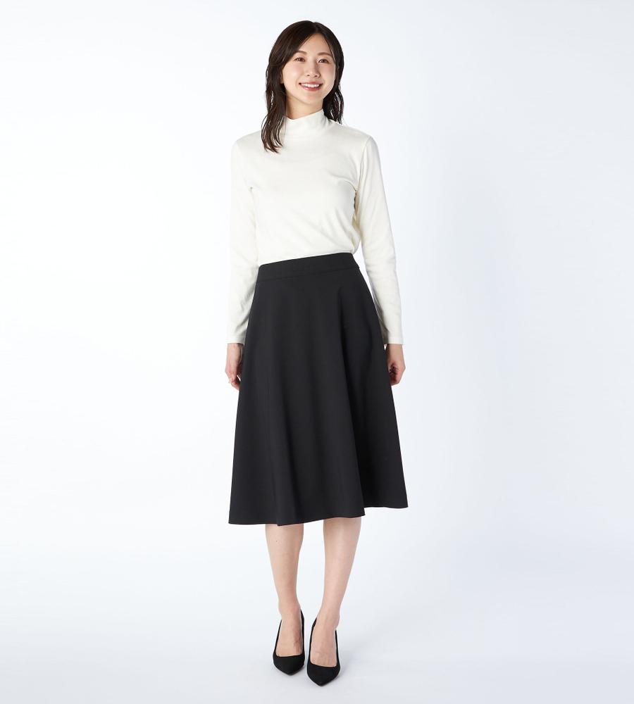 ほどよい広がりのシルエットがフェミニンさを引き上げるスカート。ひざ丈のデザインの上品さも魅力です。装飾を省いてごくシンプルにまとめられ、幅広いシーンで活用できるアイテム。ソフトな風合いの生地を使用しており、揺れ感やドレープがきれいに出るのも特徴です。同素材のジャケットとのセットアップもおすすめです。