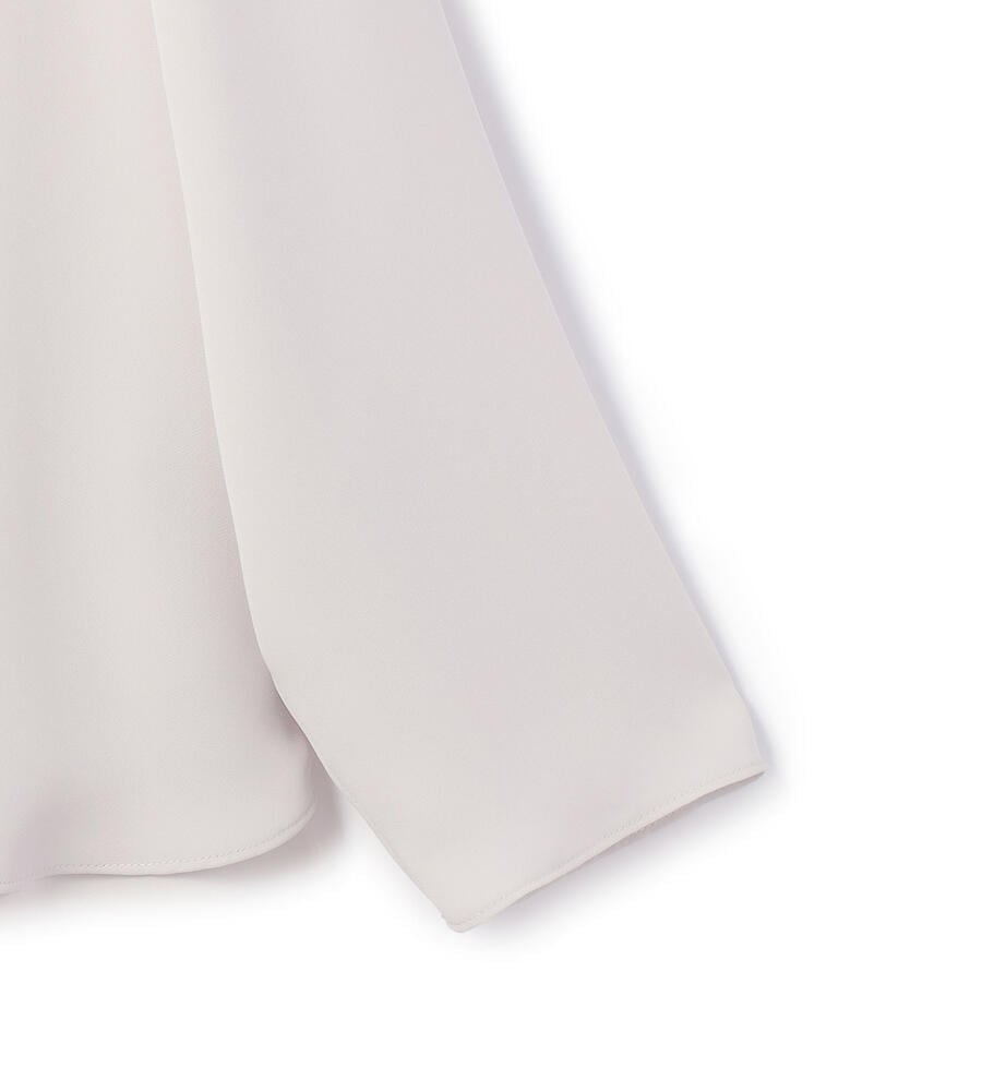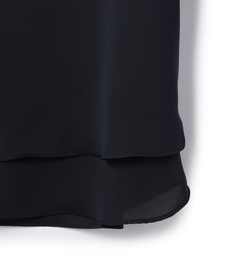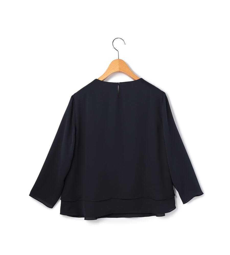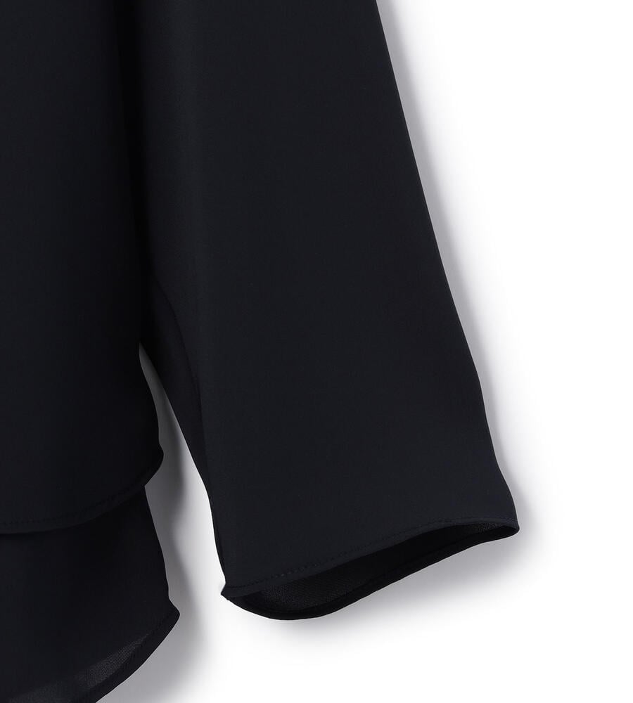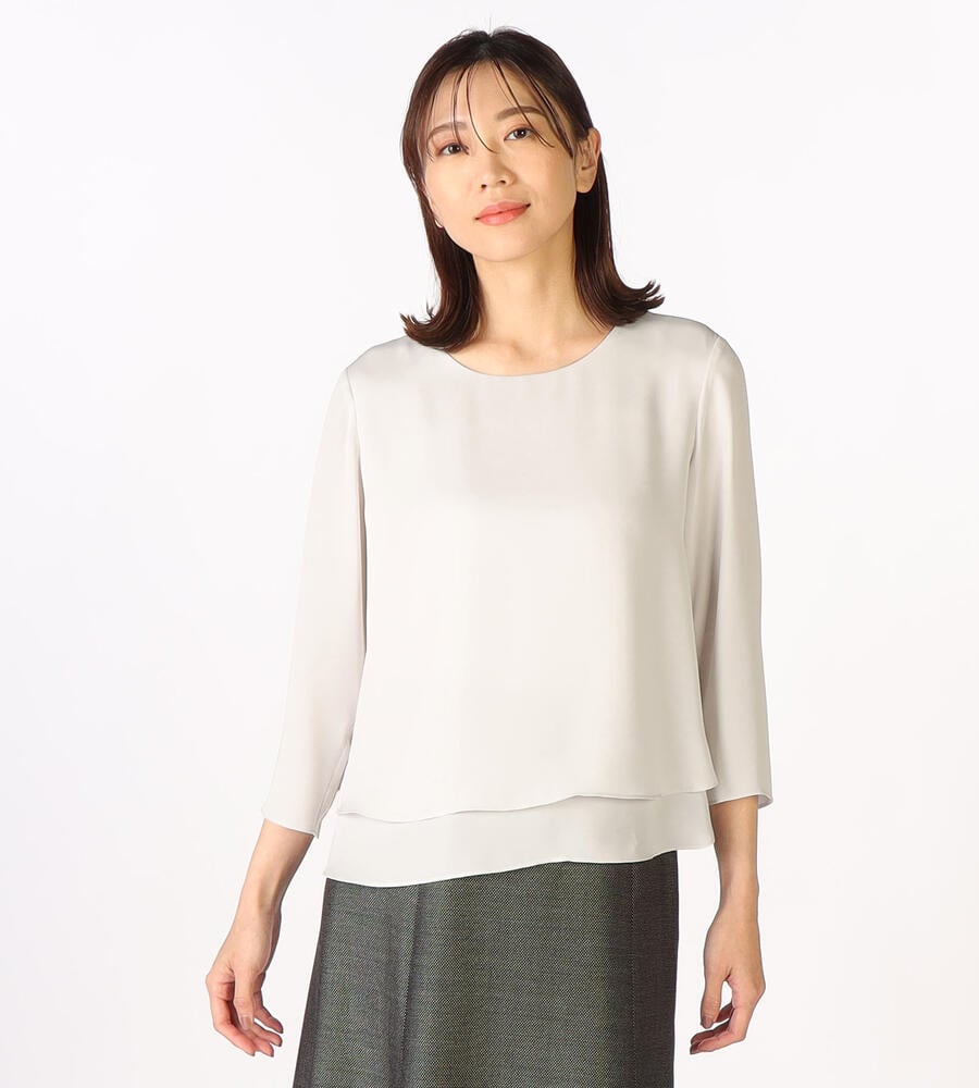 上品なムードのマットなサテン生地で仕立てた7分袖ブラウス。ふんわり丸い裾がフェミニンなデザインポイント。ドレープ感のあるなシルエットが今年らしいデザイン。様々なボトムとマッチするシンプルなデザイン。お出かけにはもちろん、様々なオケージョンにマッチするエレガントでシックなアイテムです。