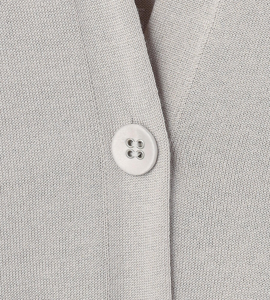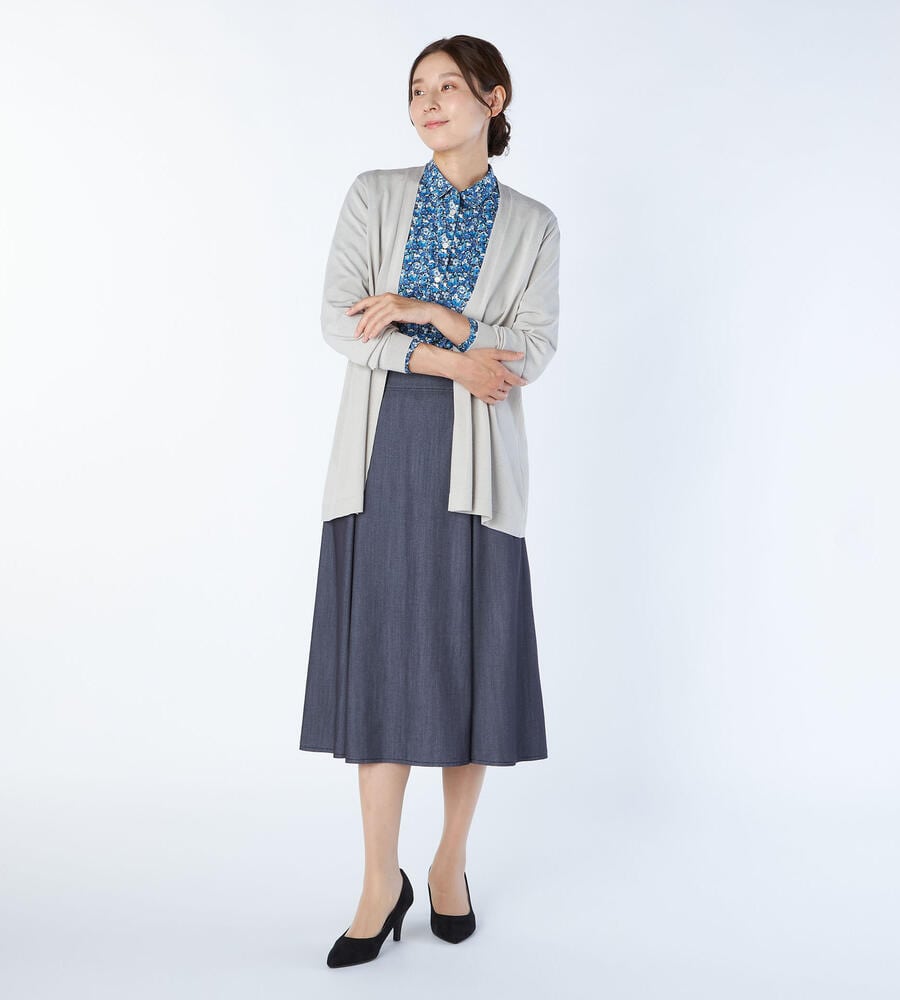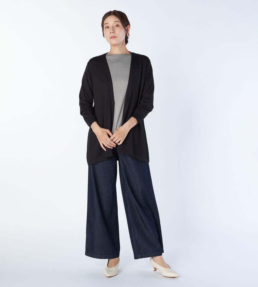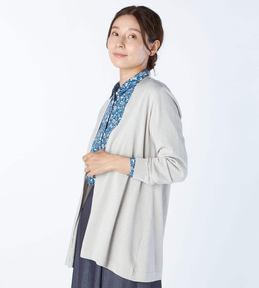 コットン混のハイゲージニットを用いたカーディガンです。少し長めの着丈ながらも落ち感があるニットで、エレガントな表情に仕上げています。季節の変わり目の羽織りとしても頼れるアイテムで、オンオフ問わずに活躍します。