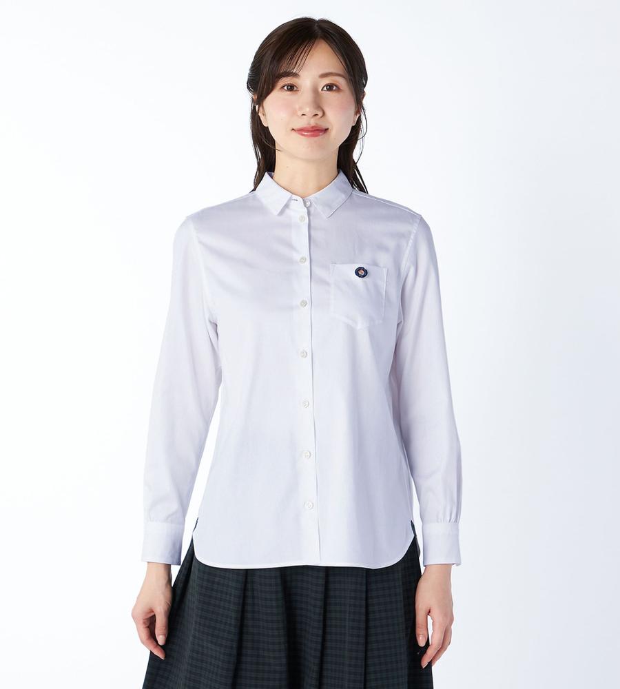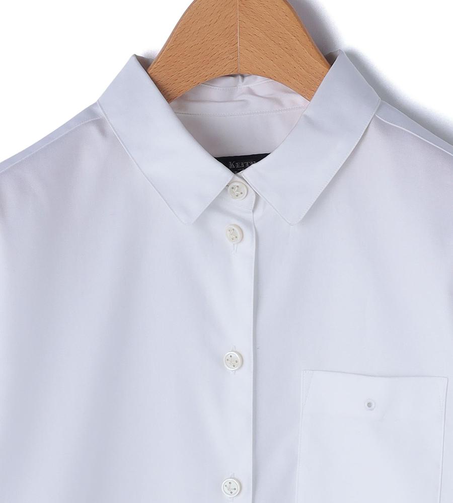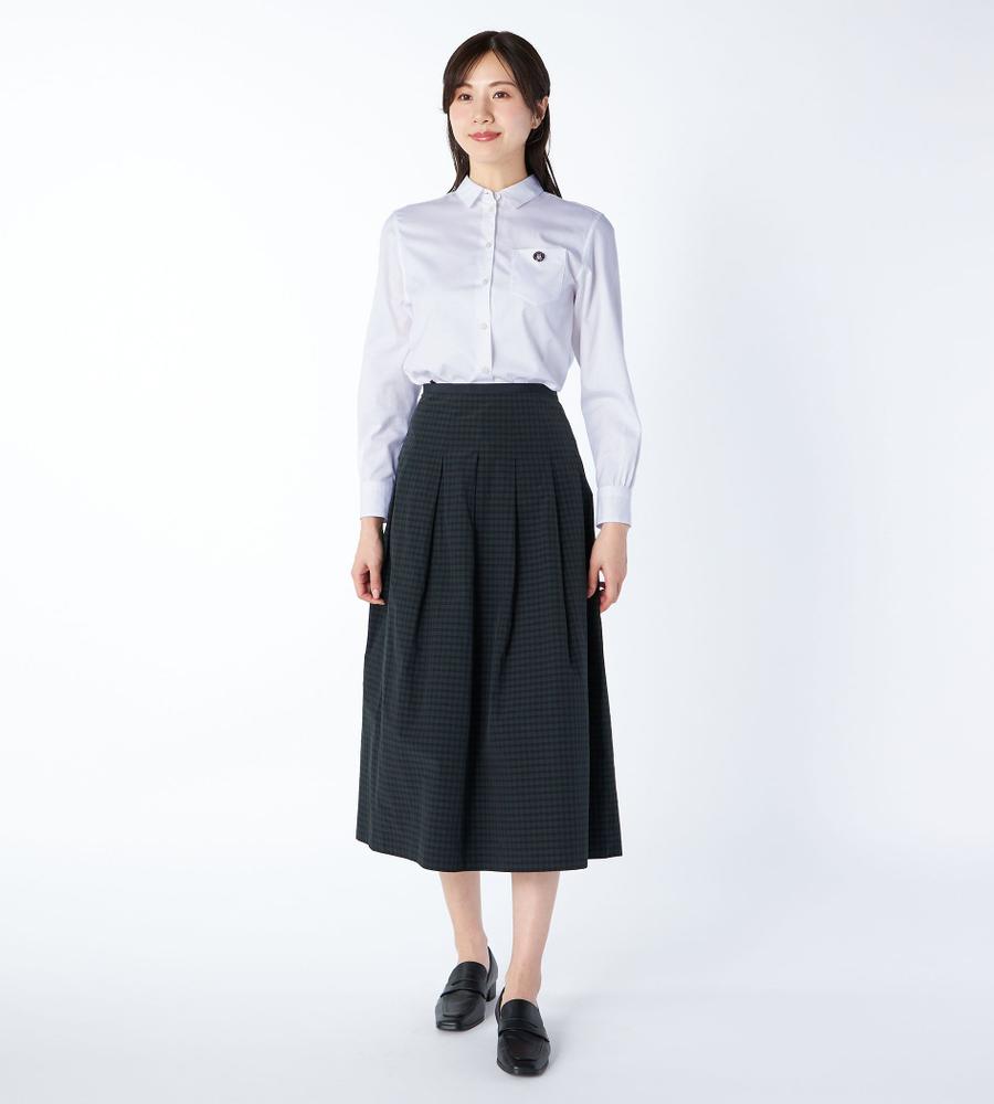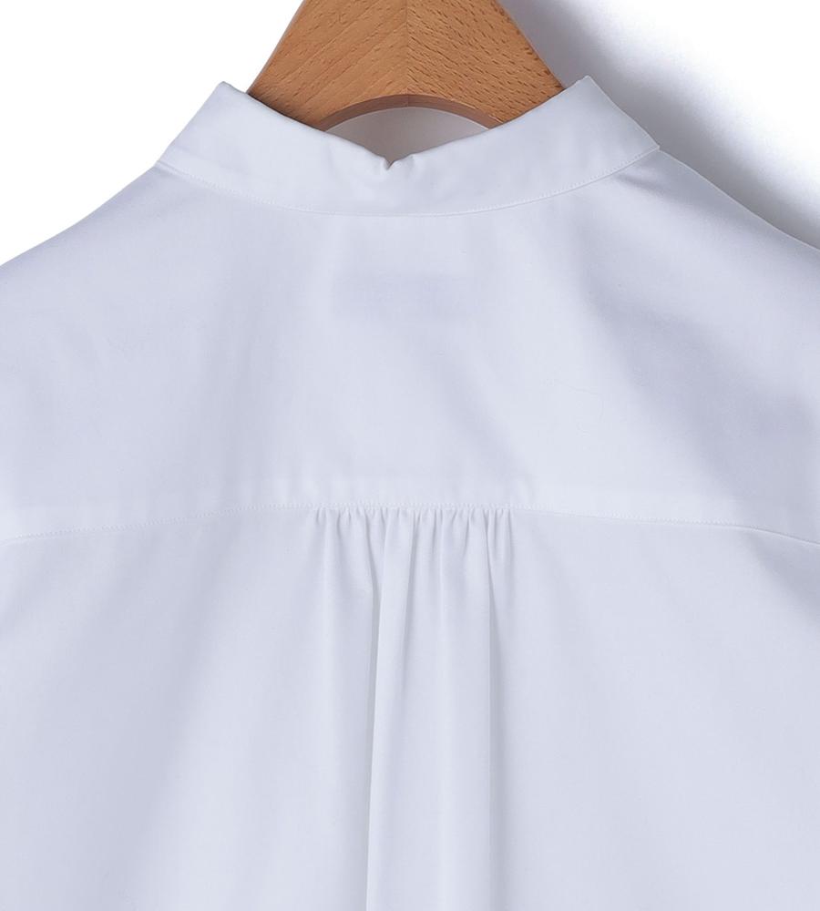 バックヨーク下のギャザーが立体感のあるシンプルなデザインのブラウス。サイドの裾にはチェック柄のガジェットがあしらわれた細部までおしゃれなデザインの一枚。すっきりと着こなせるストレートカットの裾がスタイリッシュ。シンプルなデザインでスタイルを問わず着こなせて、ビジネスシーンから休日のお出かけまで様々なシーンの着こなしで活躍します。