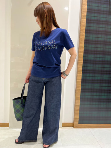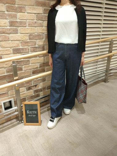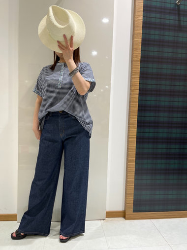 着こなしやすくさわやかなブルードビー織りのパンツ。デニムアイテムで有名な老舗ブランドEDWIN(エドウィン)とのコラボレーションアイテムです。裾に向かって広がるワイド幅のシルエットが今年らしいデザイン。パンツながら、スカートのようなフェミニンなボリューム感があり華やかな雰囲気が魅力です。