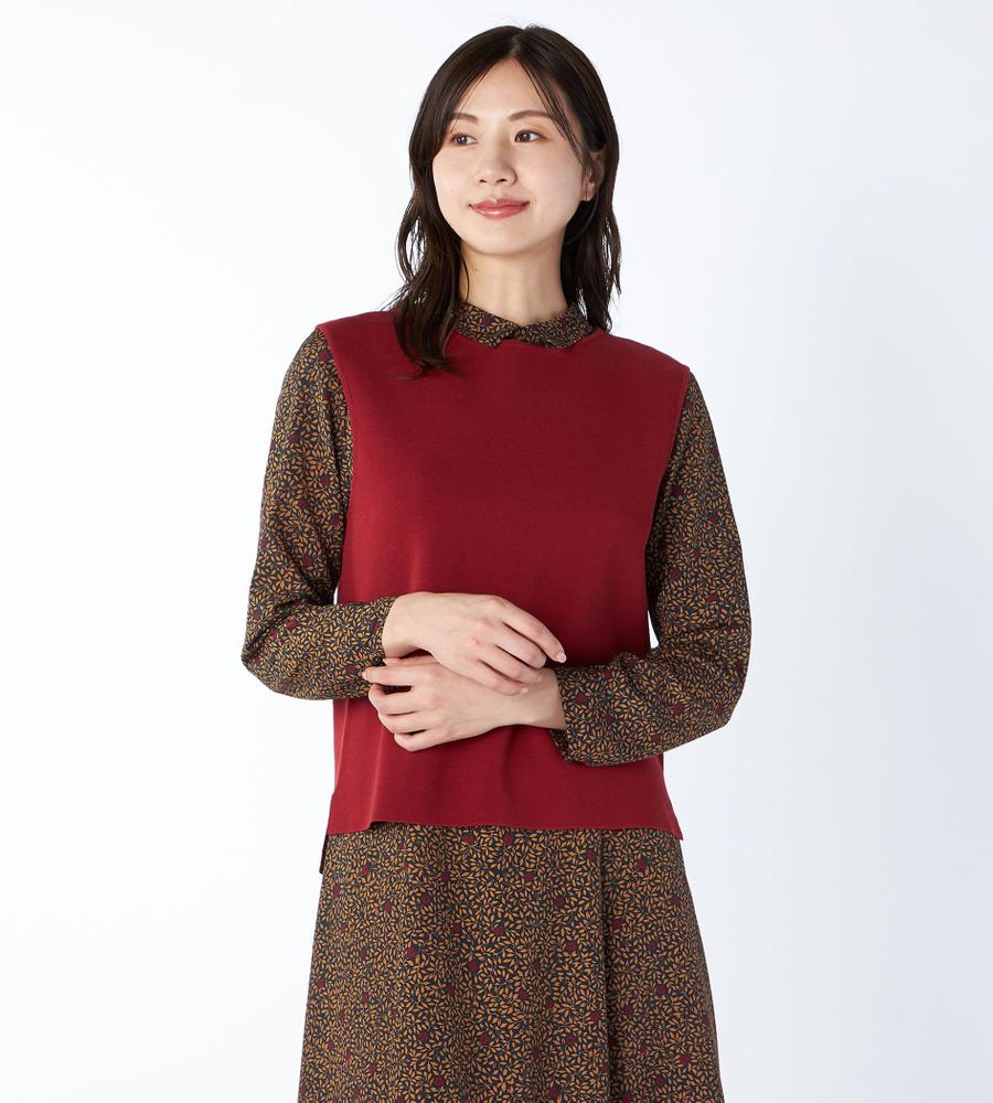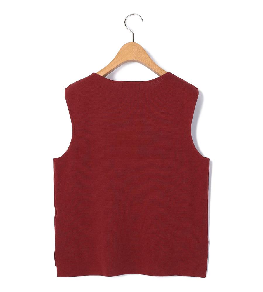 ベスト感覚でも着こなせるノースリーブのニットプルオーバー。装飾は省き、ごくシンプルなデザインに仕上げています。開きすぎないクルーネックがエレガントな印象のポイント。シックな色味が大人のコーディネートを演出します。同素材のカーディガンとのセットアップも、統一感が加わっておすすめです。