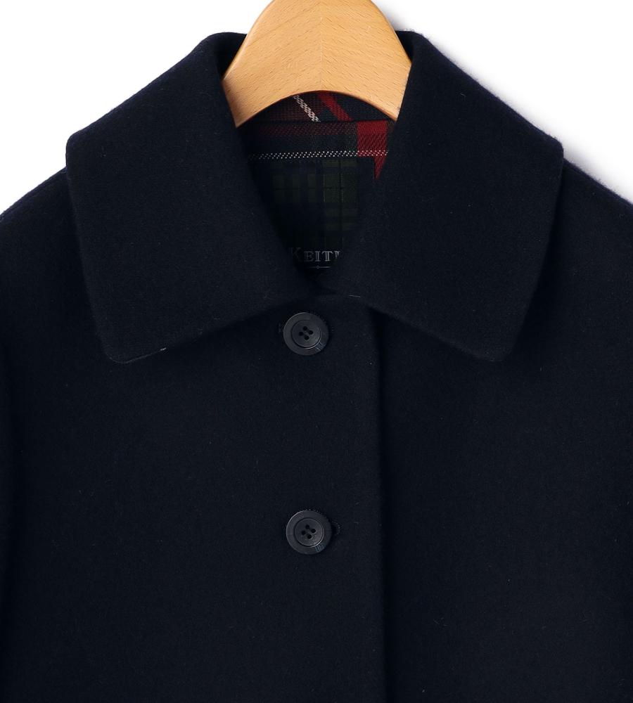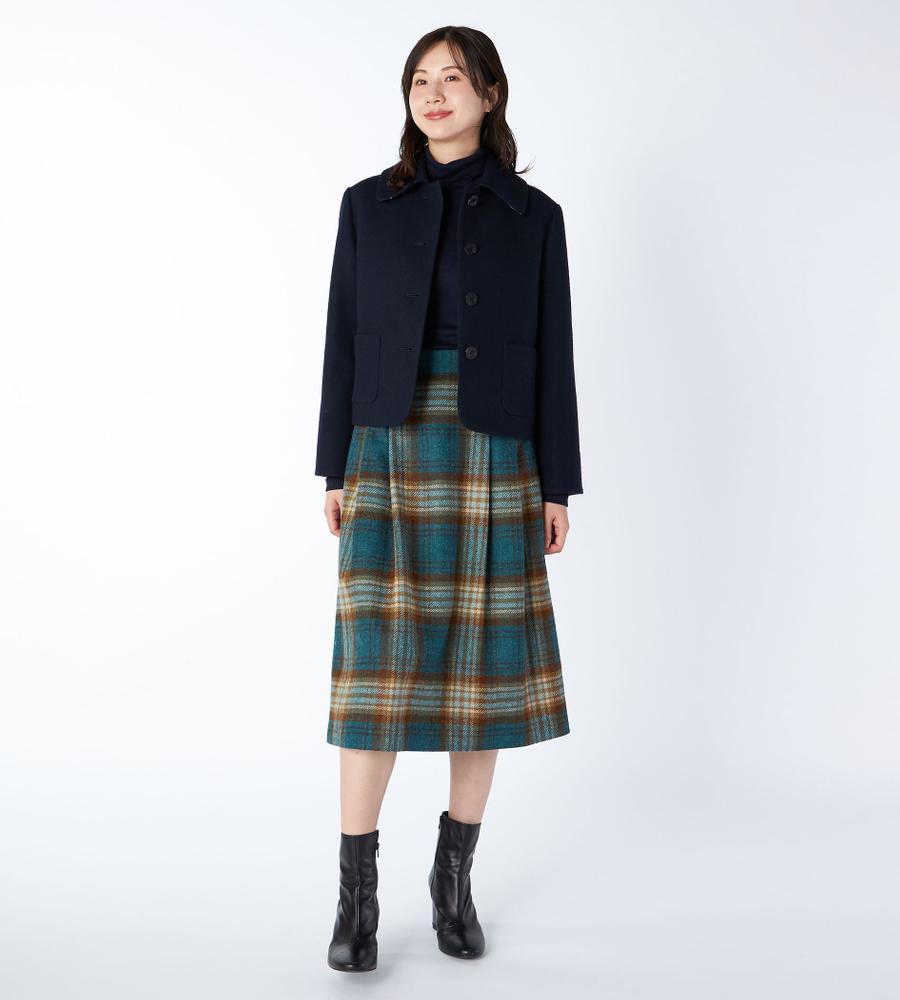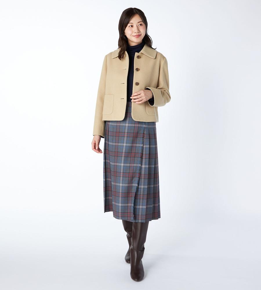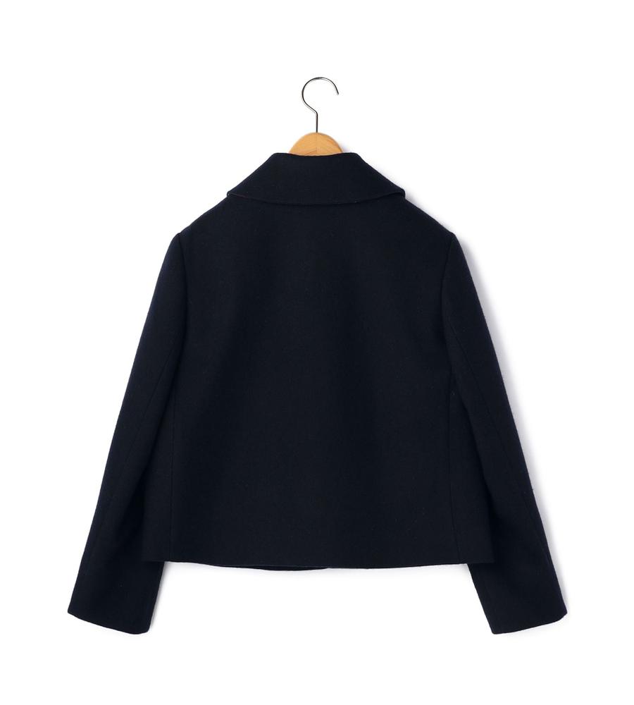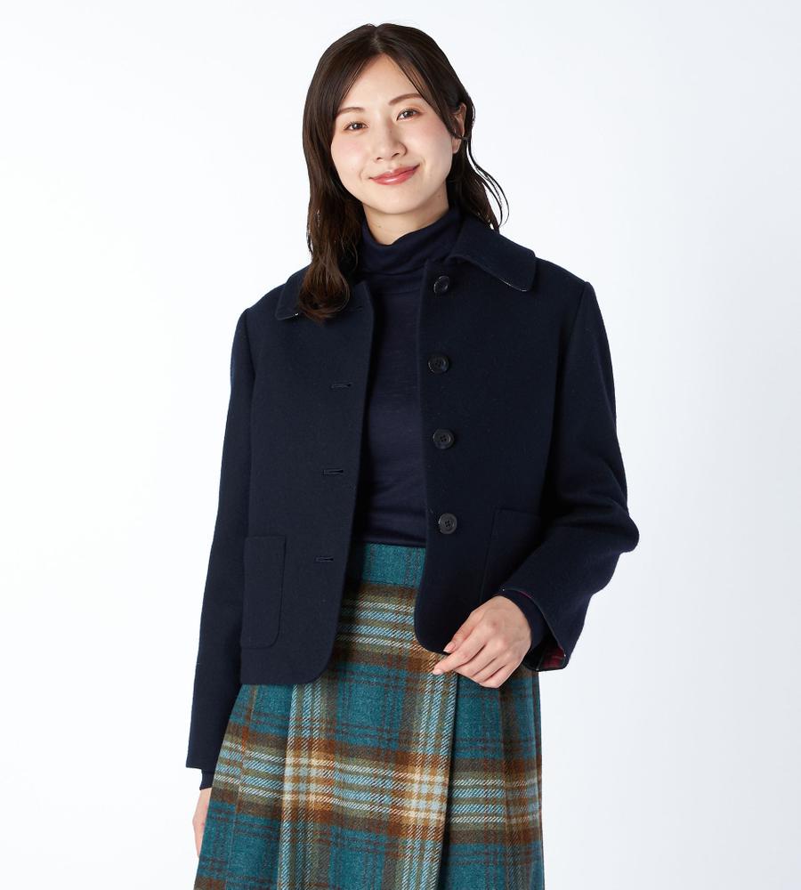 やわらかであたたかなライトビーバー生地で仕立てたジャケット。衿の裏地にチェック柄生地をあしらい、ブランドオリジナルの高級感あるボタンを配すなど、細部までこだわりを感じられるおしゃれなデザインが魅力。短めの丈感で着こなしやすく、さっと羽織れてエレガントなスタイリングが完成します。