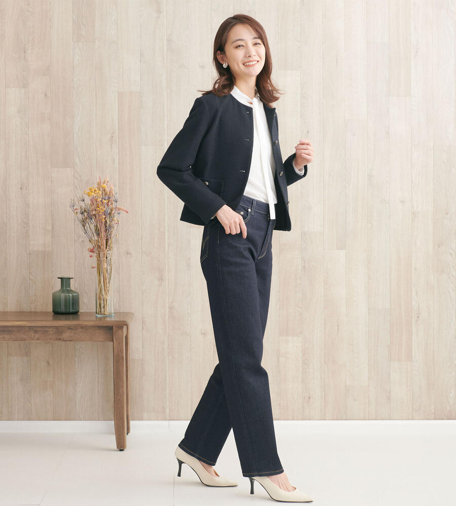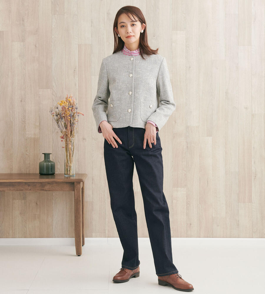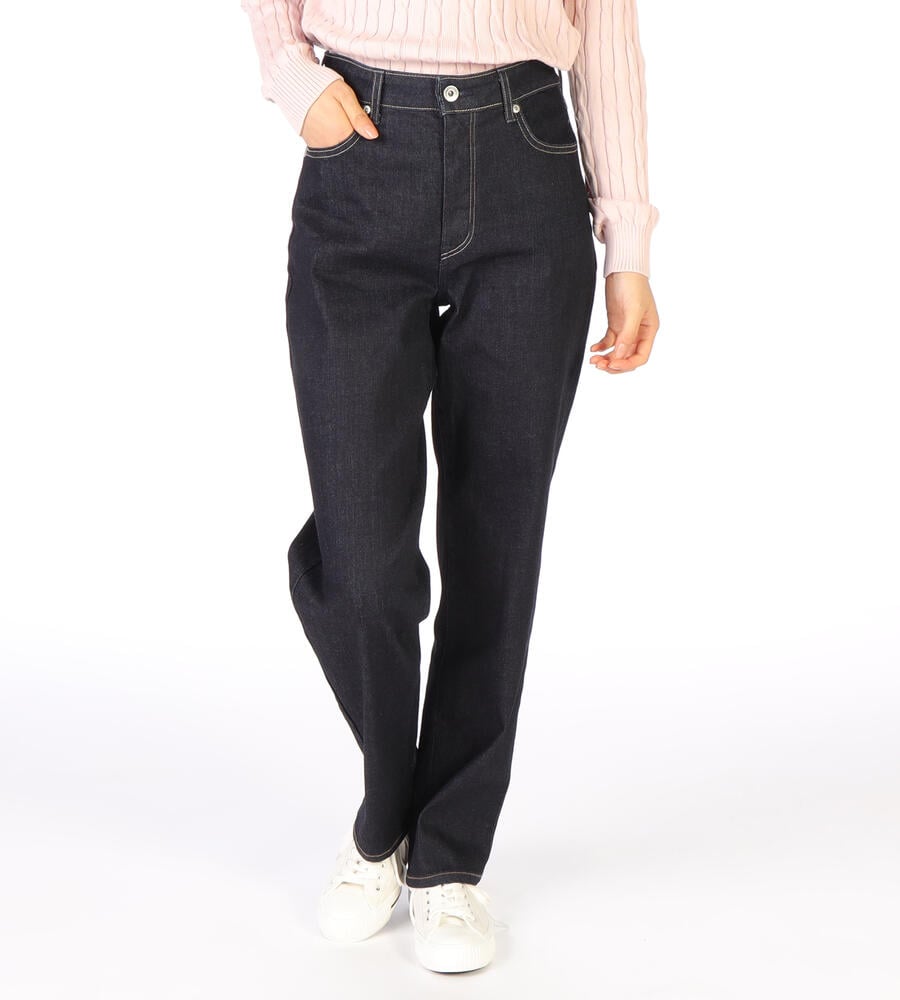 ハイライズデザインのクラシックなデニムパンツ。スタンダードな5ポケット仕様です。裾に向かってやや細身に仕上げており、ゆとりがありながらもすっきりと穿きこなせます。カジュアルな印象なので、足もとはスニーカー合わせがおすすめ。自然なストレッチ感で動きやすさも備えています。