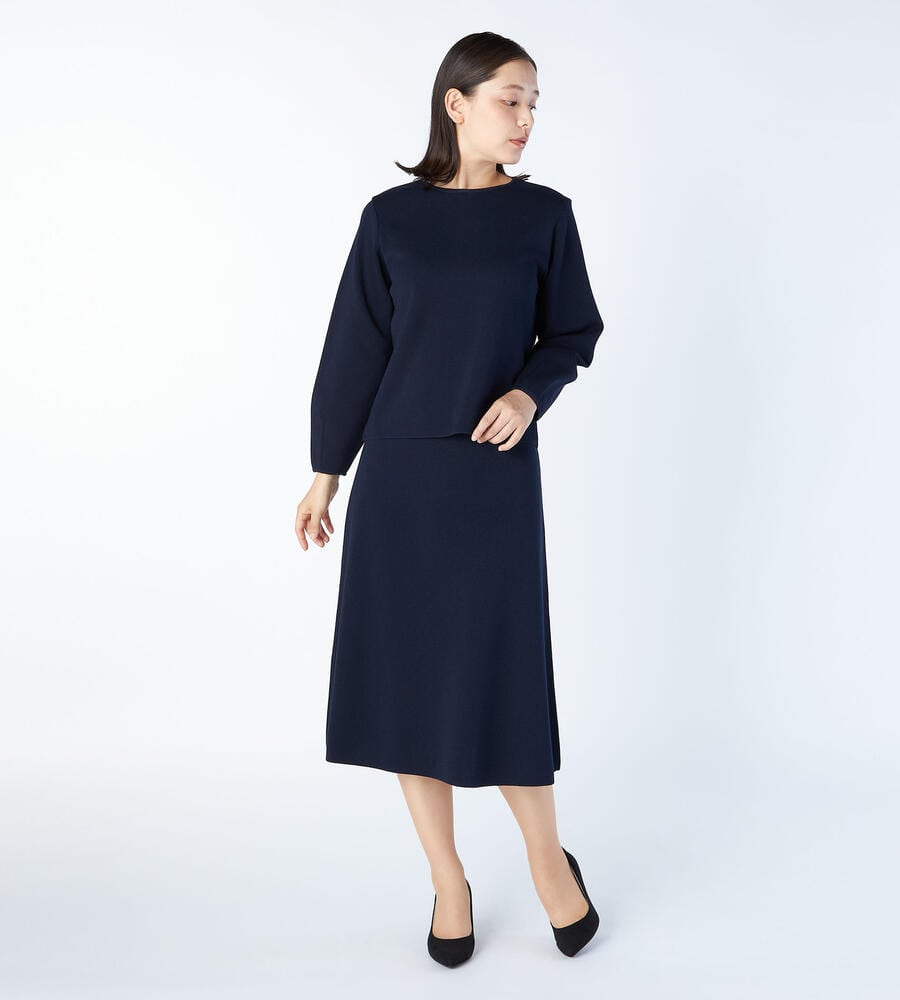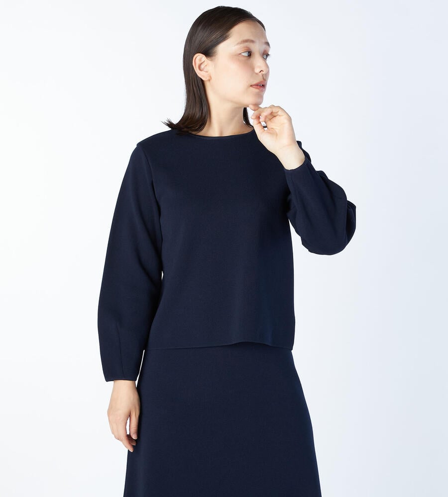 エレガントなムードの長袖ニットプルオーバー。ボトムを選ばず着こなせる、丸みのあるワイド袖が今年らしさを感じられるスタイリッシュなデザインディテール。シンプルなデザインで合わせやすく、お出かけからオフィスカジュアルまで、オン・オフ問わずスタイリングできる汎用性の高いアイテムです。