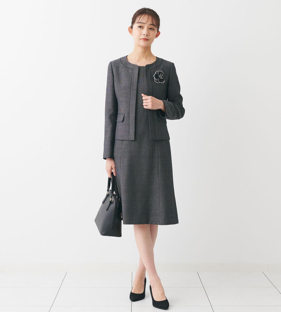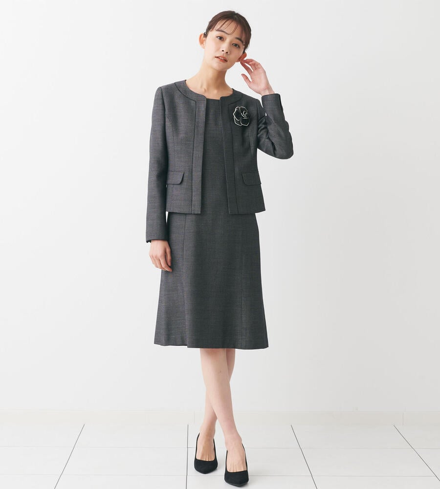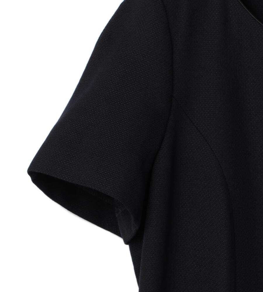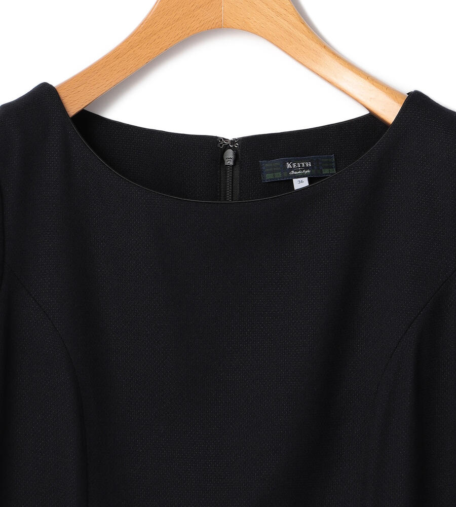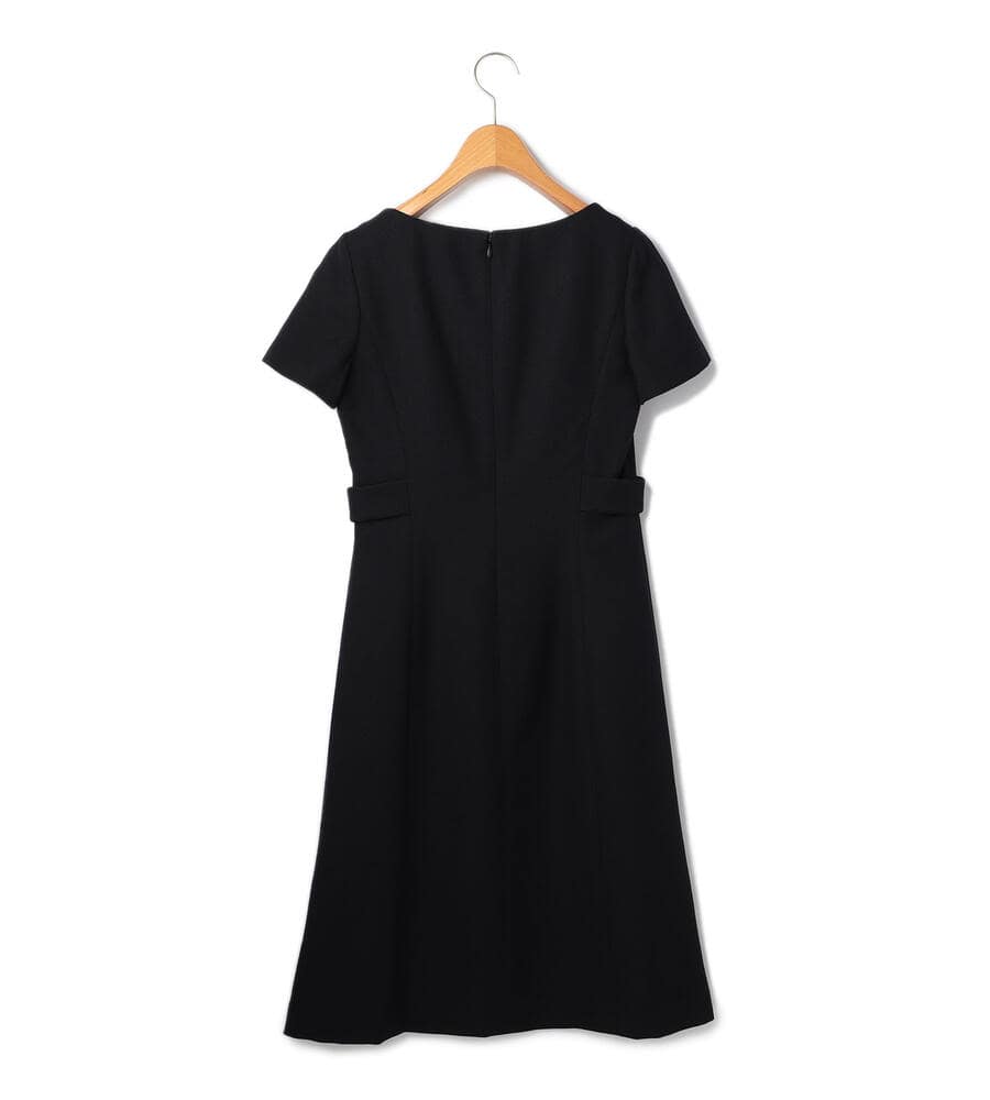 バーズアイ柄の生地で仕立てた、エレガントなハーフスリーブワンピース。裾に向かって緩やかに広がる、クラシカルなAラインシルエットです。ウエスト部分にに施したサイドベルトのディテールにより、目線が上に行くことで、スタイルアップ効果も期待できます。横に広いラウンドネックは、鎖骨ラインが綺麗に映えるのもポイントです。パールアクセサリーを合わせ、フォーマルにも取り入れられます。