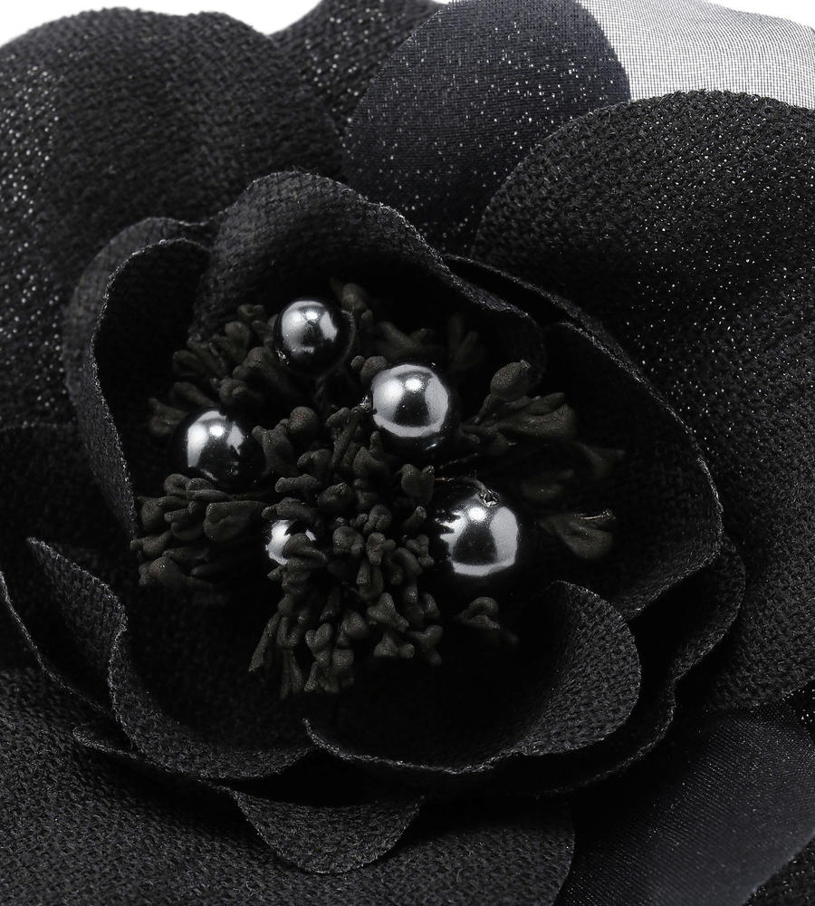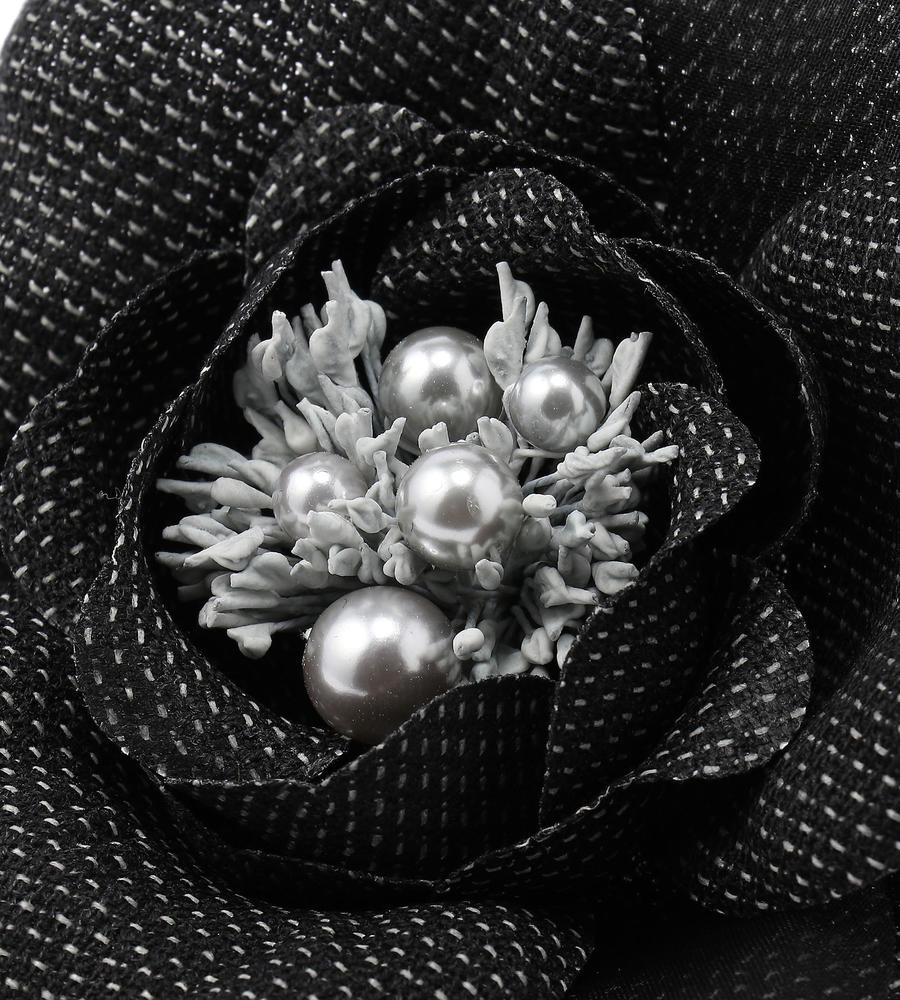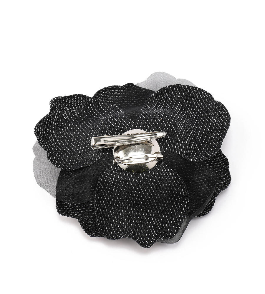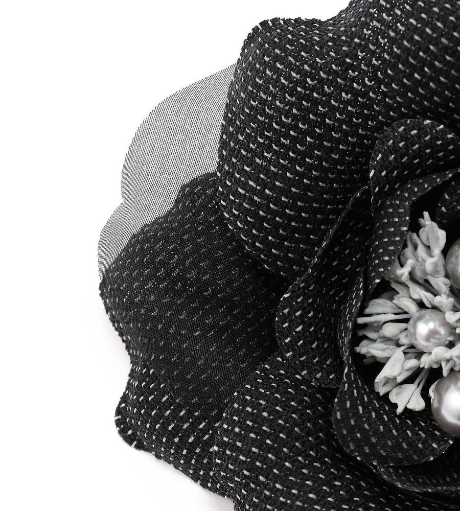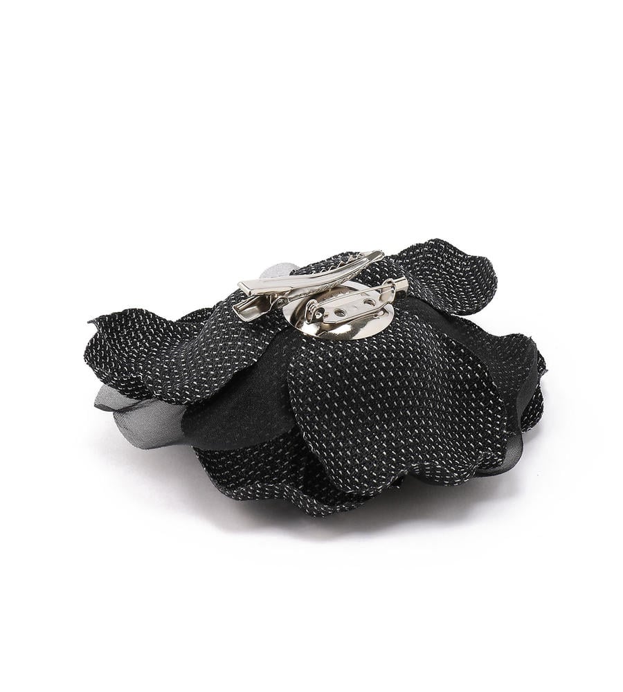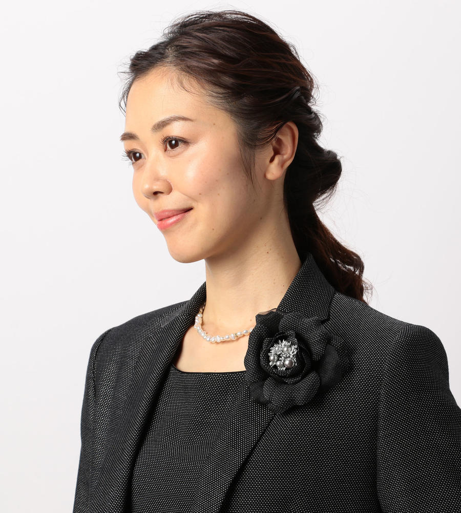 ウール、シルク、ポリエステルといった異なるファブリックを用い、エレガントにデザインしたフラワーコサージュ。中心には大小のパールビジューを施し、煌めきのエッセンスをプラス。ピンとクリップで留められる使いやすい仕様としました。パーティやセレモニーのドレスアップスタイルにシックな華やかさを添えてくれるアクセサリーです。