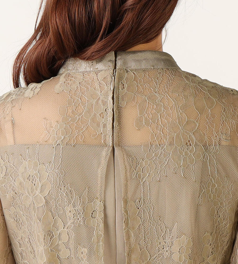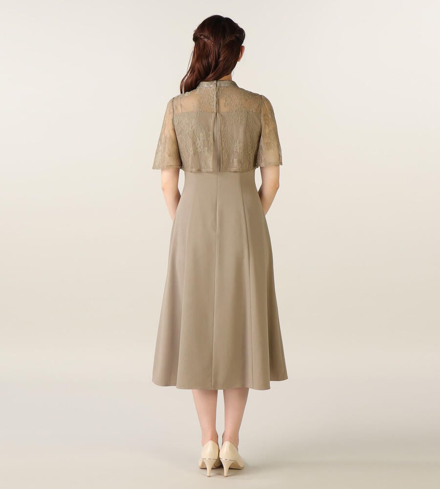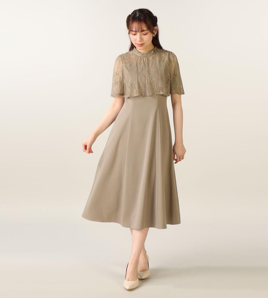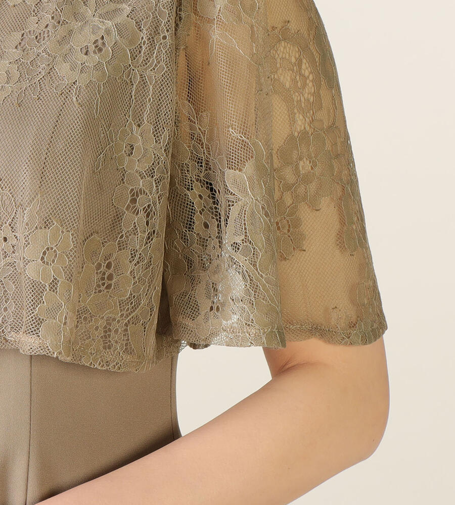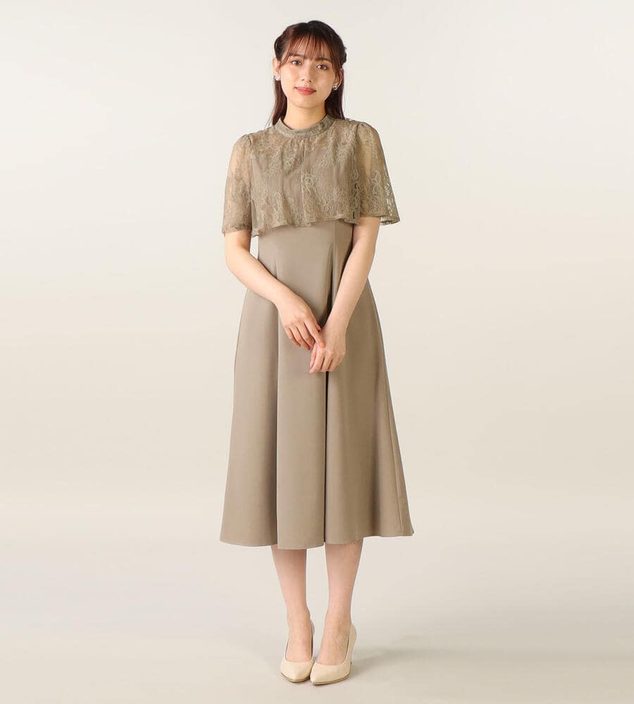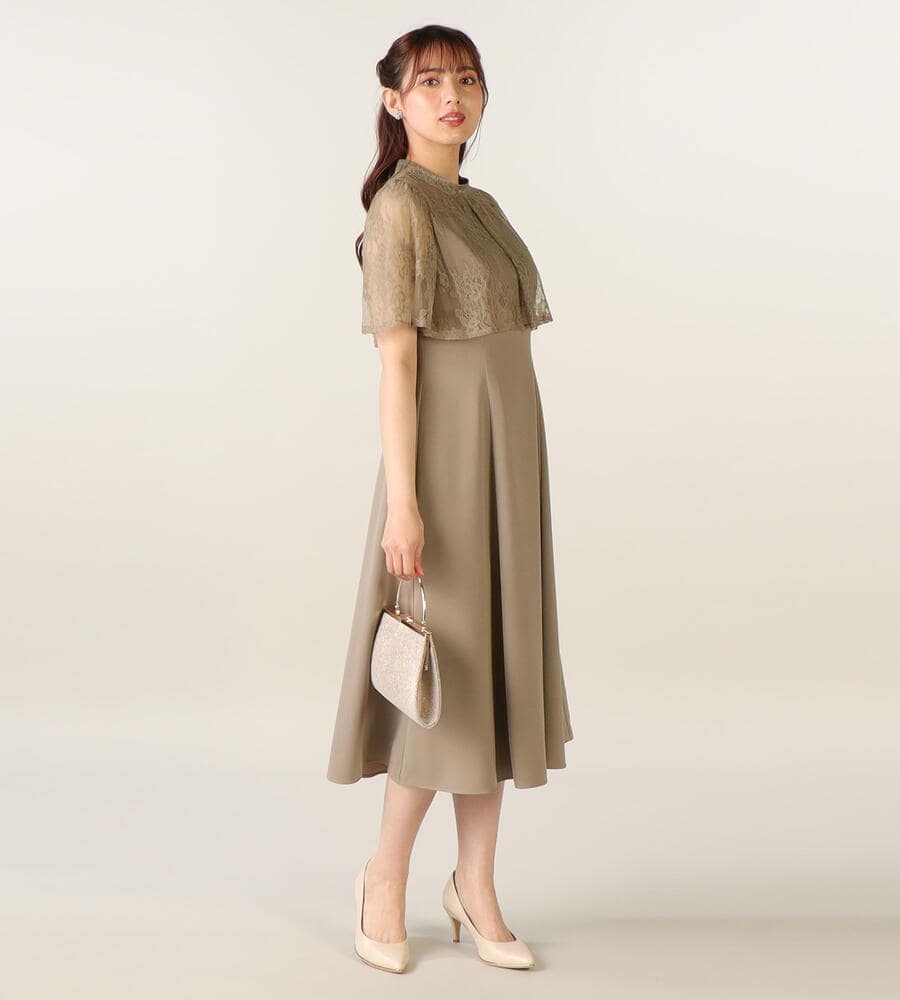 ケープ部分は繊細なラッセルレースを使用し、身頃は程よく落ち感のある素材。スカートのフレアーシルエットを綺麗に見せてくれます。