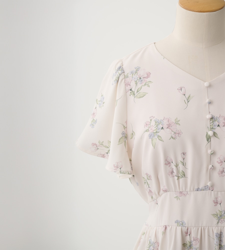 オンライン限定販売のため、ウエストをお好みで調整できるウエストリボン付きのデザイン、カーディガンを羽織ってもすっきり見えるフレアスリーブなど、試着なしでも買いやすいデザインにもこだわっています。