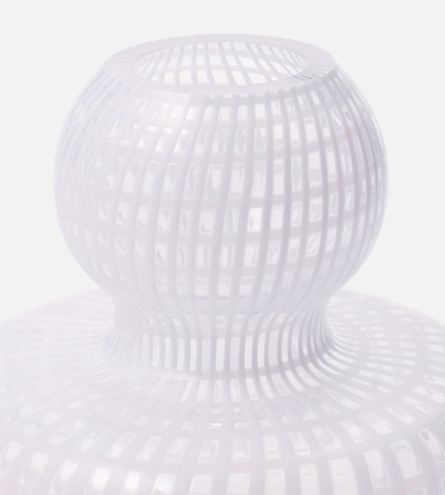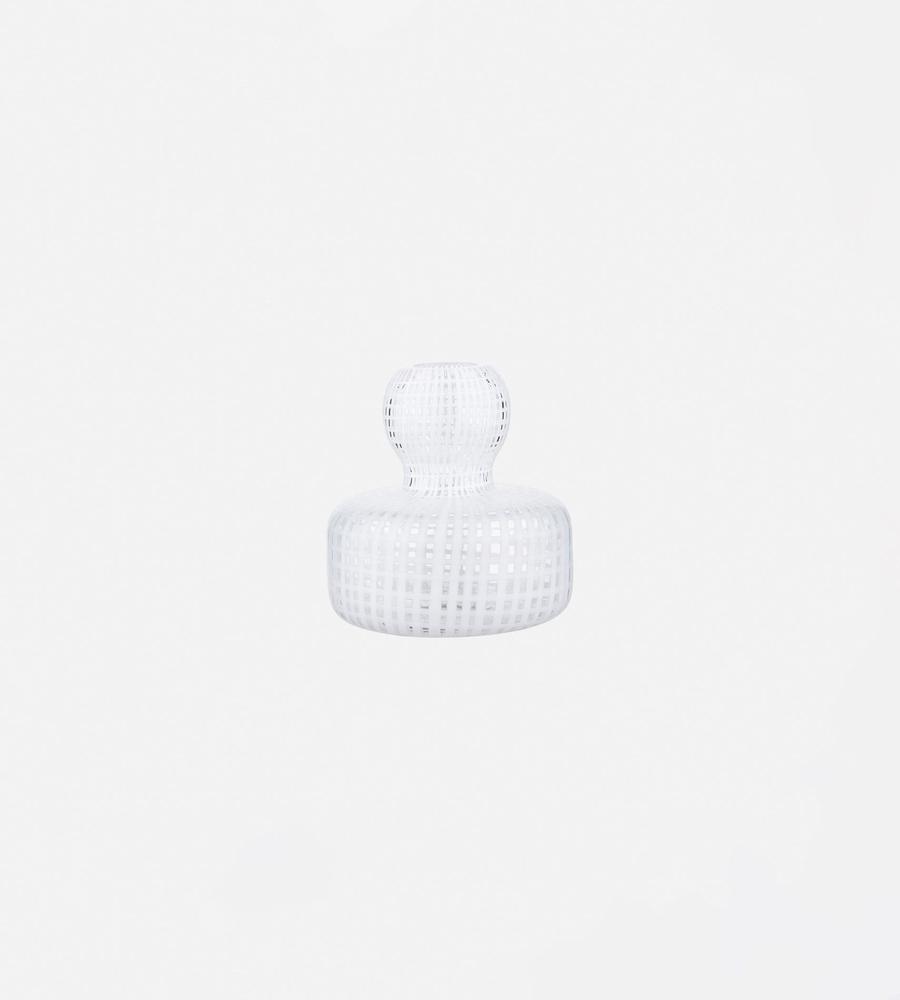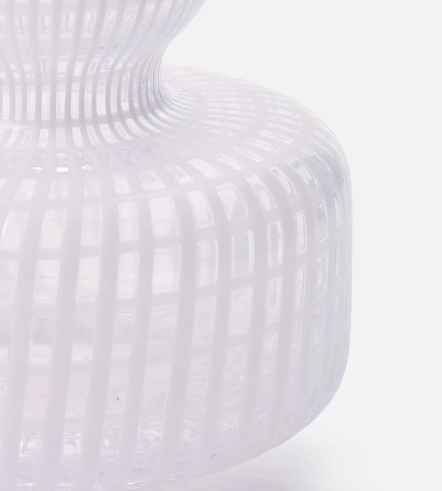 シンプルな中にひねりを効かせたフラワーベース。流れるような格子柄が、インテリアのさりげないアクセントに。コロンとした丸みのあるフォルムも、優美な表情を演出します。