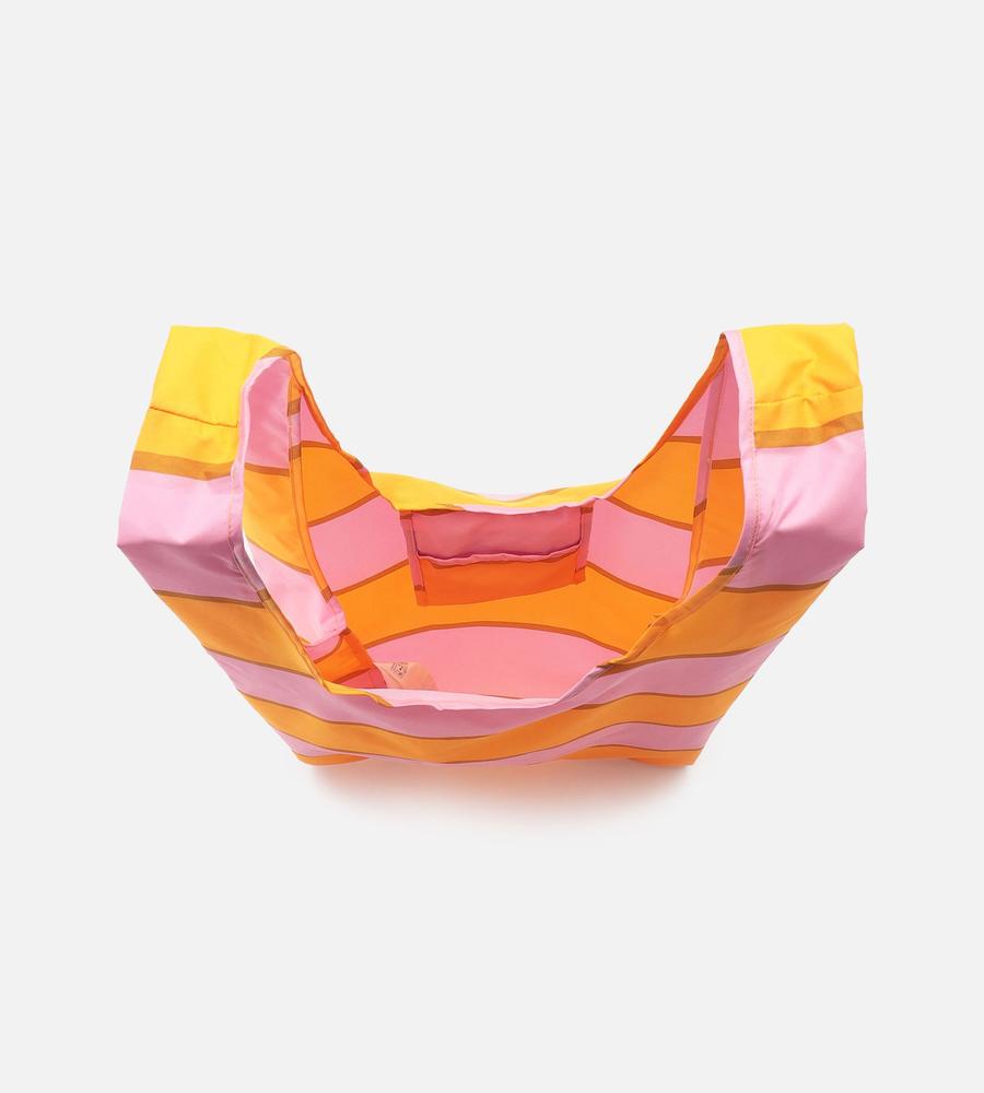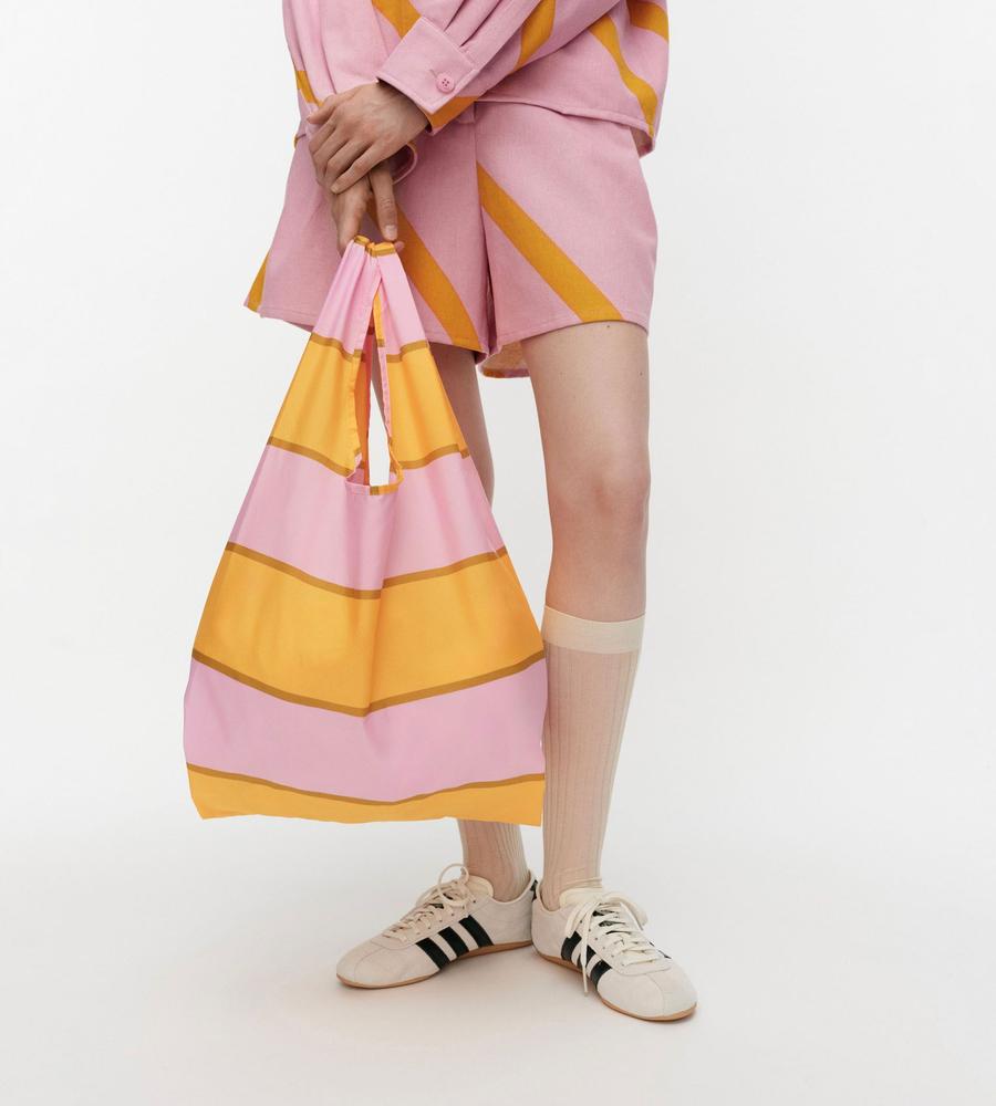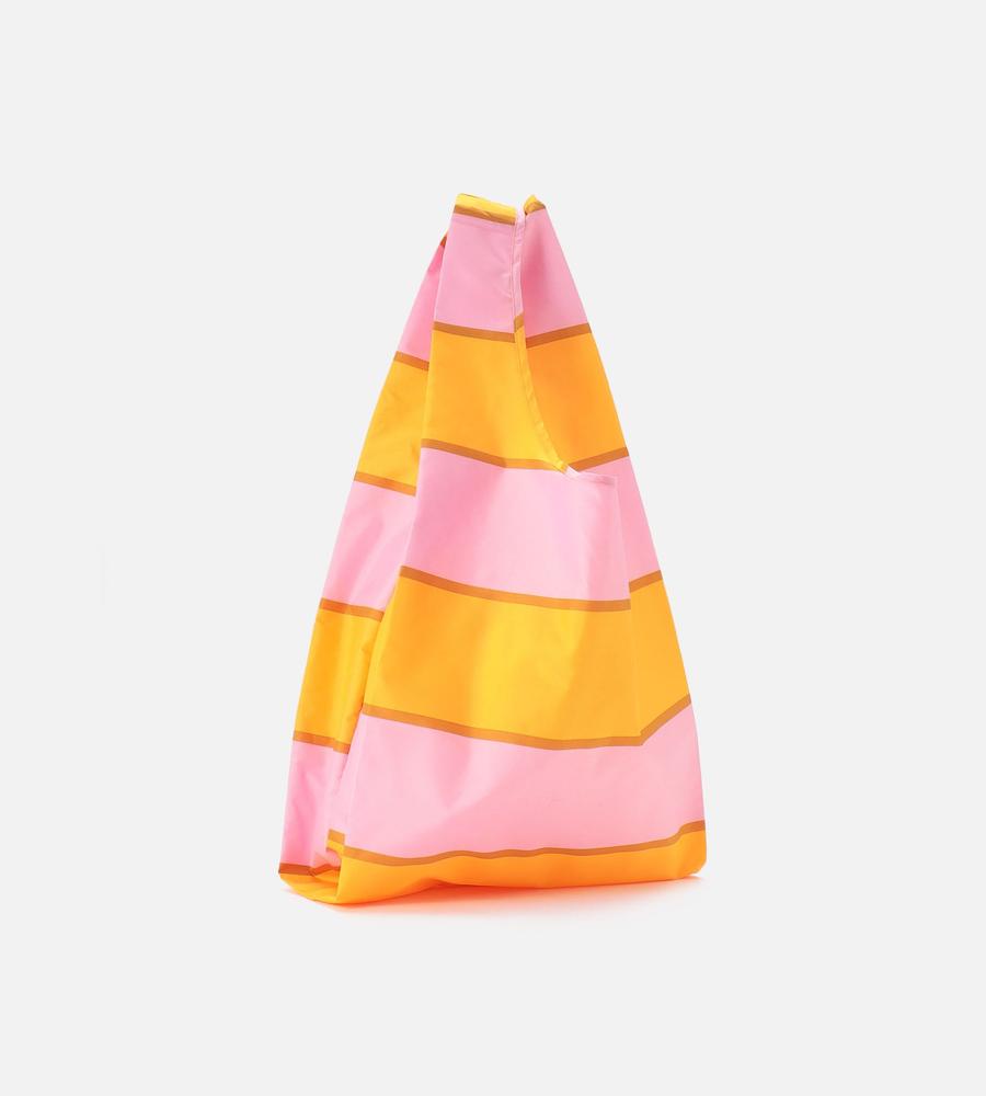 毎日のショッピングのお供にぴったりな配色ボーダー柄のスマートバッグです。折りたたみデザインでバッグに入れての持ち歩きに便利、買い物はもちろん増えがちな荷物の収納など色んなシーンで活躍します。色違いで欲しくなる豊富なカラバリもポイント、自分用はもちろんプレゼントにもおすすめです。