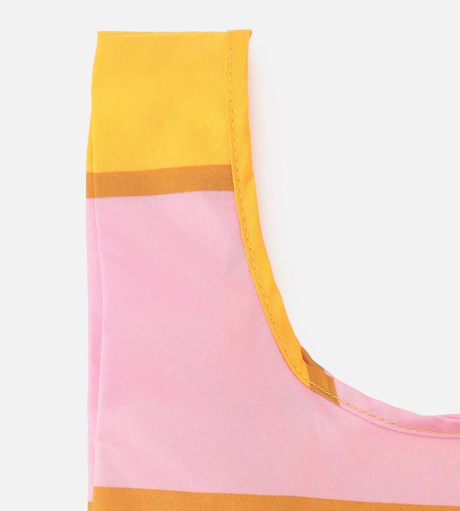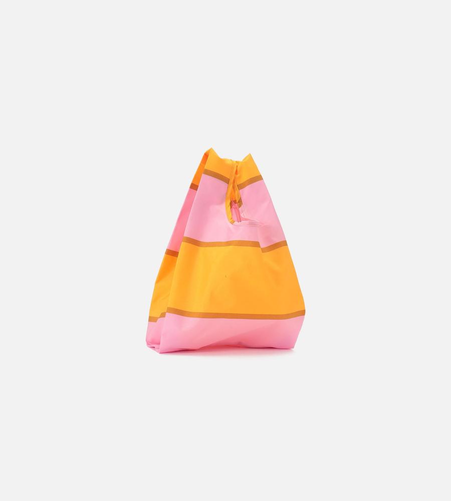 毎日のショッピングのお供にぴったりな配色ボーダー柄のスマートバッグです。折りたたみデザインでバッグに入れての持ち歩きに便利、お手頃な小さめサイズでランチの買い出しやコンビニなど色んなシーンで活躍します。色違いで欲しくなる豊富なカラバリもポイント、自分用はもちろんプレゼントにもおすすめです。