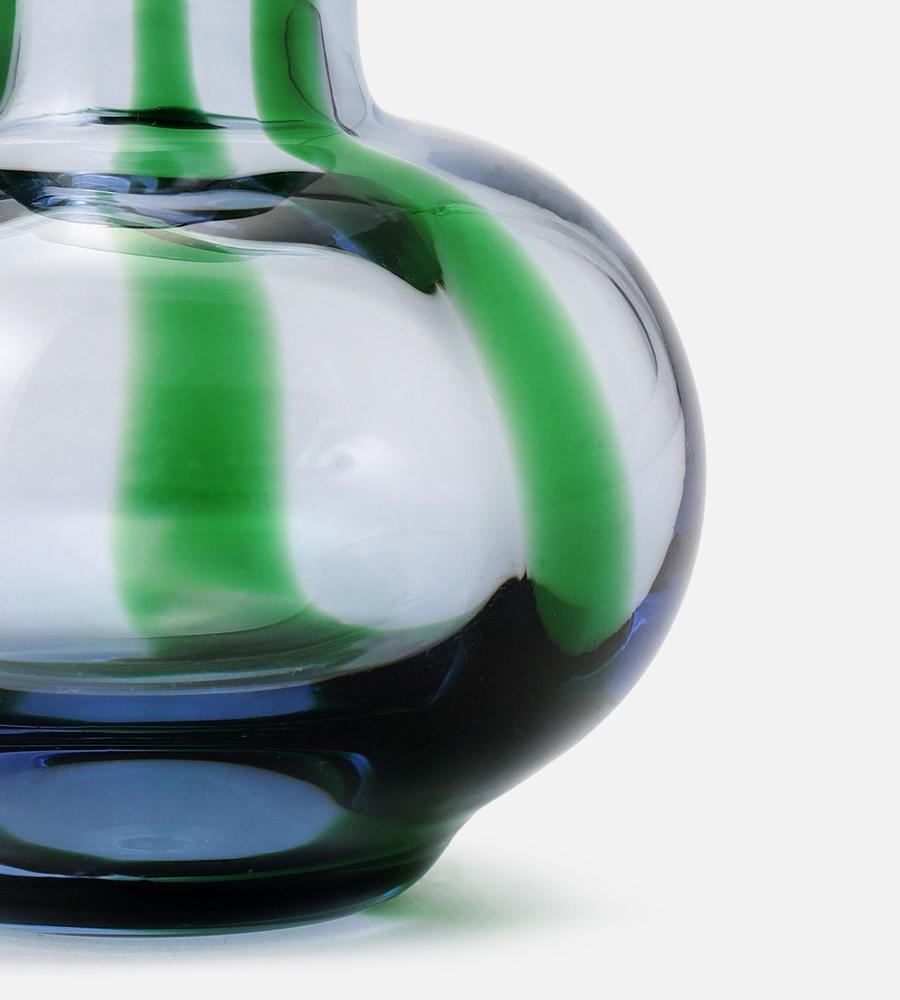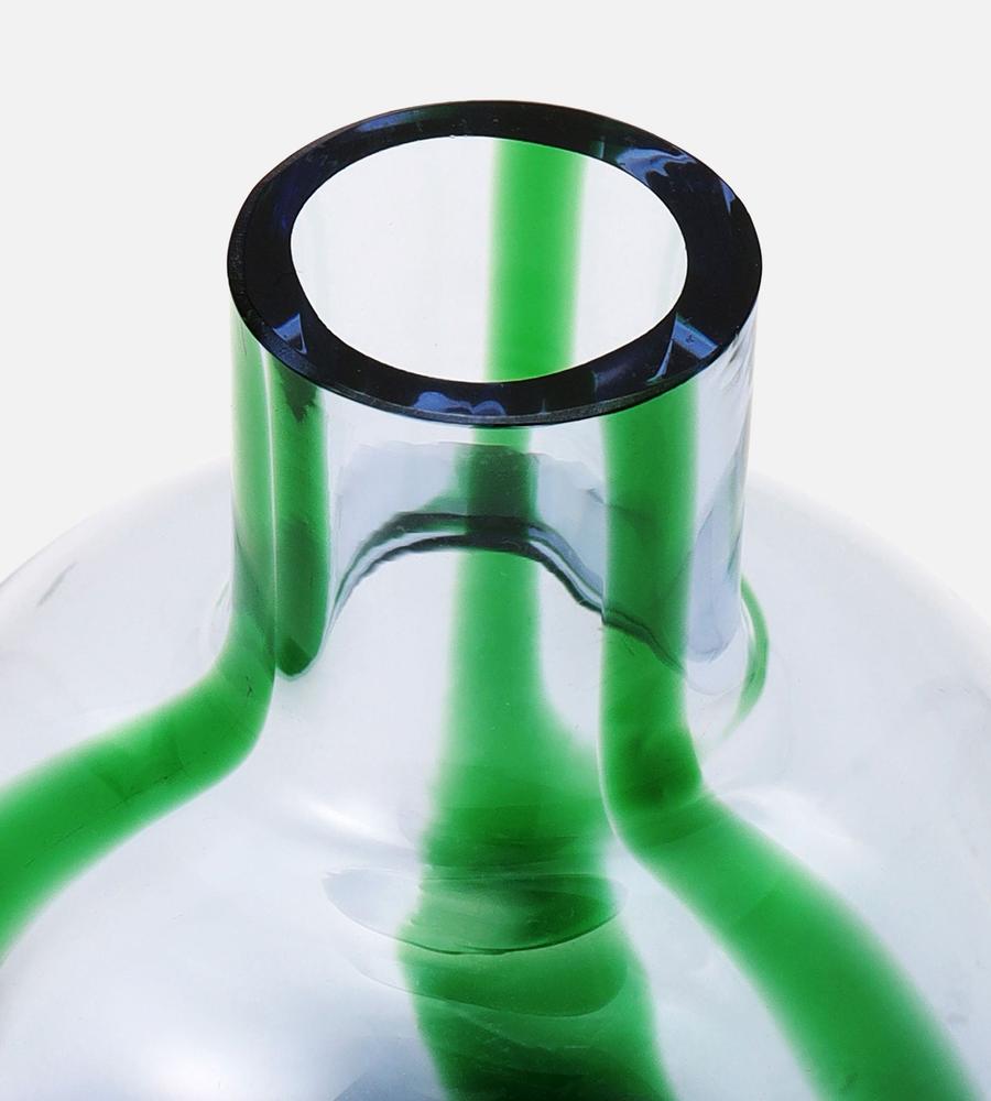 コロンとしたフォルムの手吹きガラスのフラワーベース2個セット。ガラスにカラーラインのあしらいがスタイリッシュなデザイン。丸いモダンで印象的なシルエットも魅力。花を生けるのにはもちろん、キャンドルフォルダーとしても使える優れもの。インテリアスタイリングのアクセントにぴったりなアイテムです。