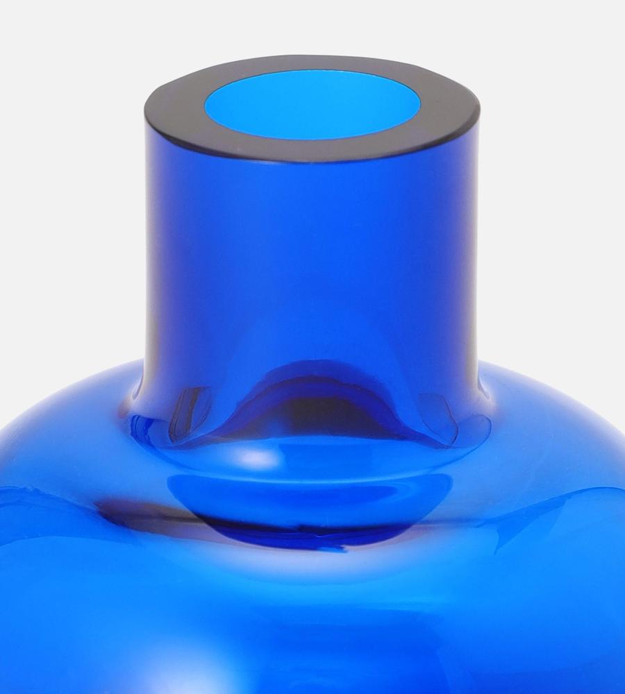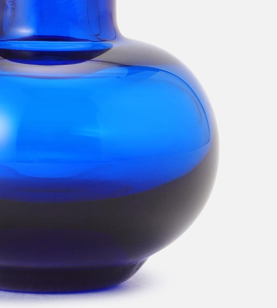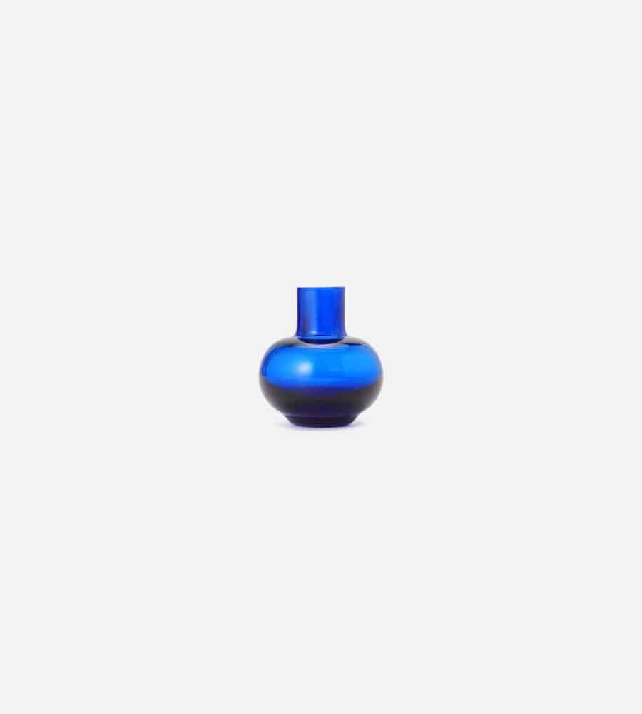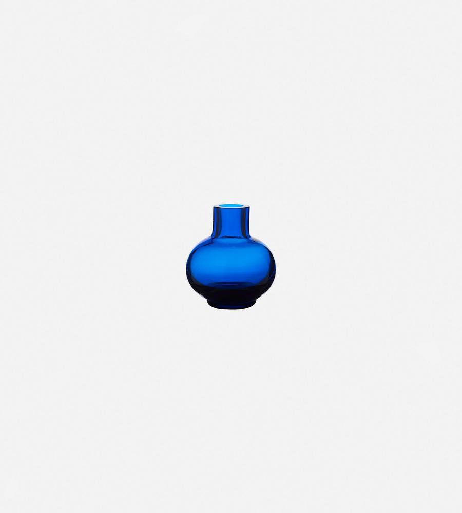 鮮やかなカラーと透明なガラス素材が美しいミニフラワーベース。ころんとした丸いフォルムと細めの首がモダンなフォルム。花を飾っていない間もインテリアコーディネートのアクセントになるスタイリッシュなデザインのアイテムです。