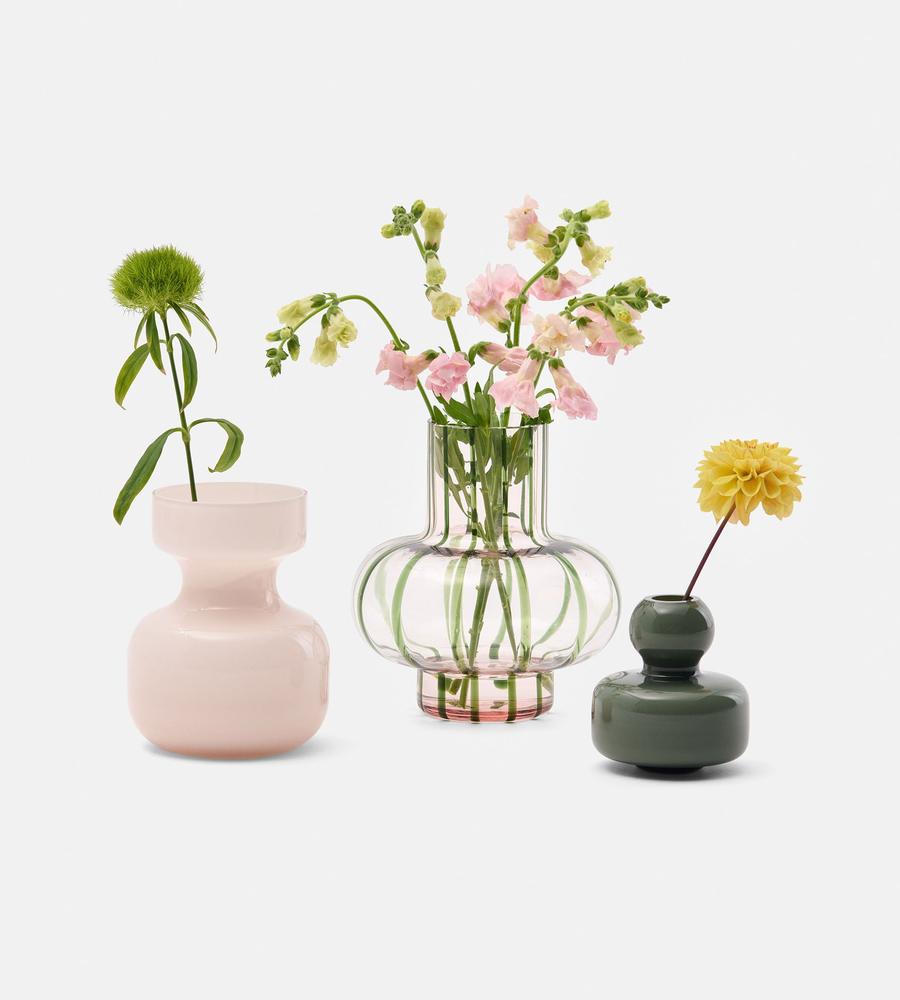 ファッションからインテリア雑貨まで幅広いジャンルで人気のMarimekkoから、Sakkiフラワーベースが登場です。柔らかなラインを描くラウンドシルエットに真ん中のくびれがアクセントをプラス、あわせる花や草木を選びません。花瓶としてはもちろん、そのままお部屋に飾るのもおすすめのアイテムです。