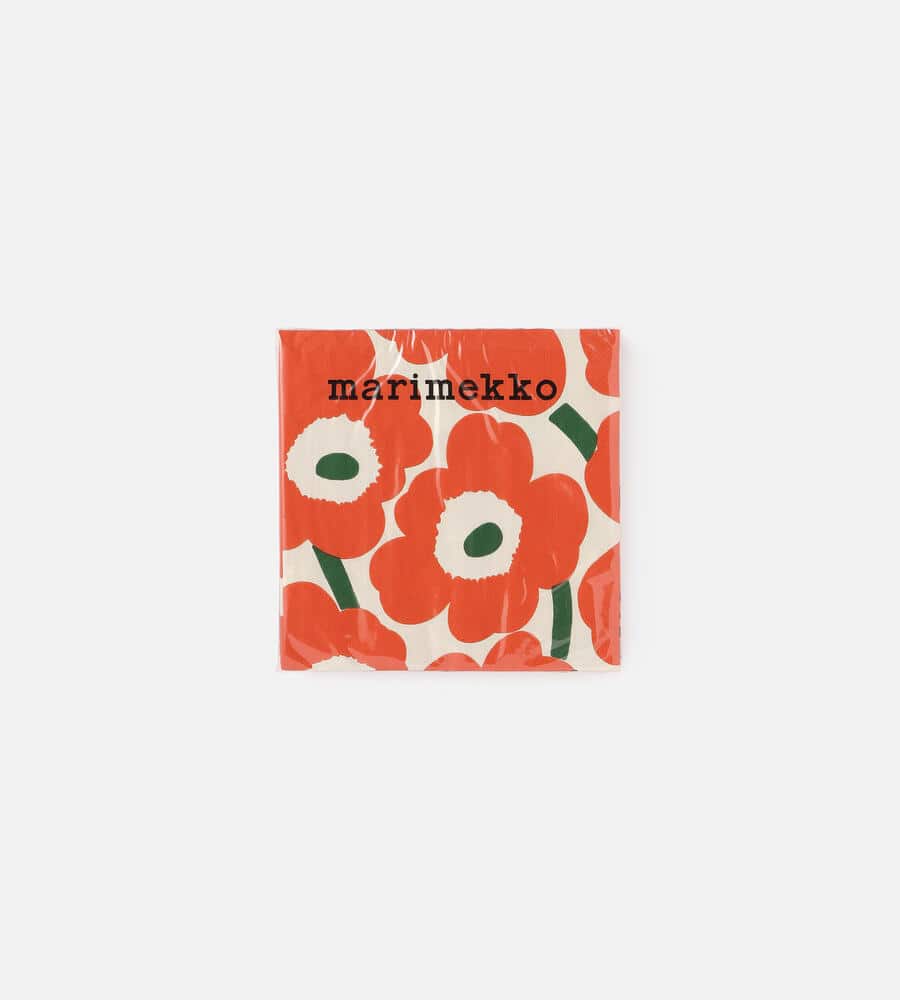 Marimekkoを代表するUnikko柄のランチナプキン。ダイナミックな花のプリントパターン、カラフルなカラートーンがスタイリッシュなデザイン。いつものテーブルコーディネートにプラスするだけで、ぱっと華やかなムードになるアイテム。ふだん使いから、おもてなしやパーティーなど様々なシーンで活躍します。