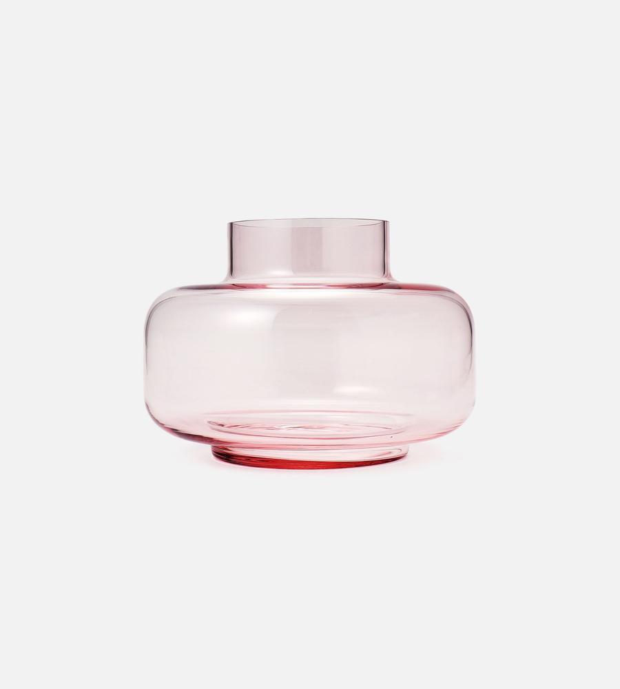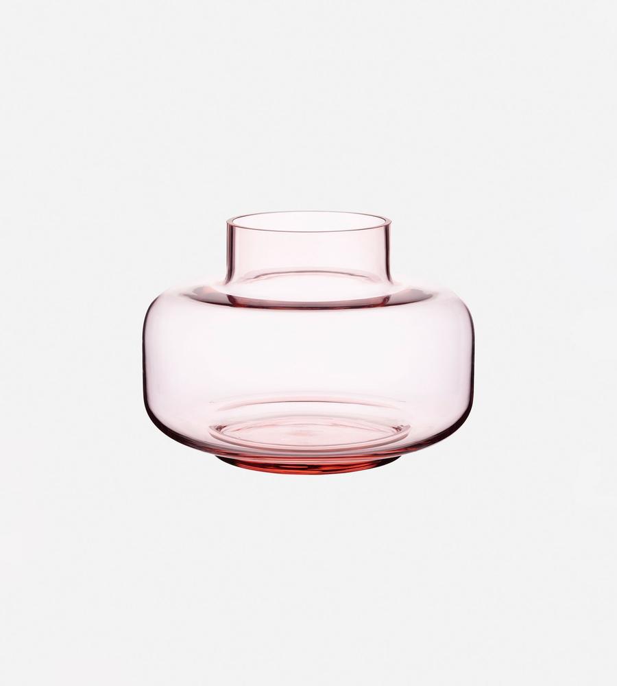 コロンとしたフォルムの手吹きガラスのフラワーベース。透明のガラスにうっすらと色のついた美しいカラー。ボトムが大きく、低く丸みのある特徴的でモダンなシルエットも魅力。花を生けるのにはもちろん、キャンドルフォルダーとしても使える優れもの。インテリアスタイリングのアクセントにぴったりなアイテムです。