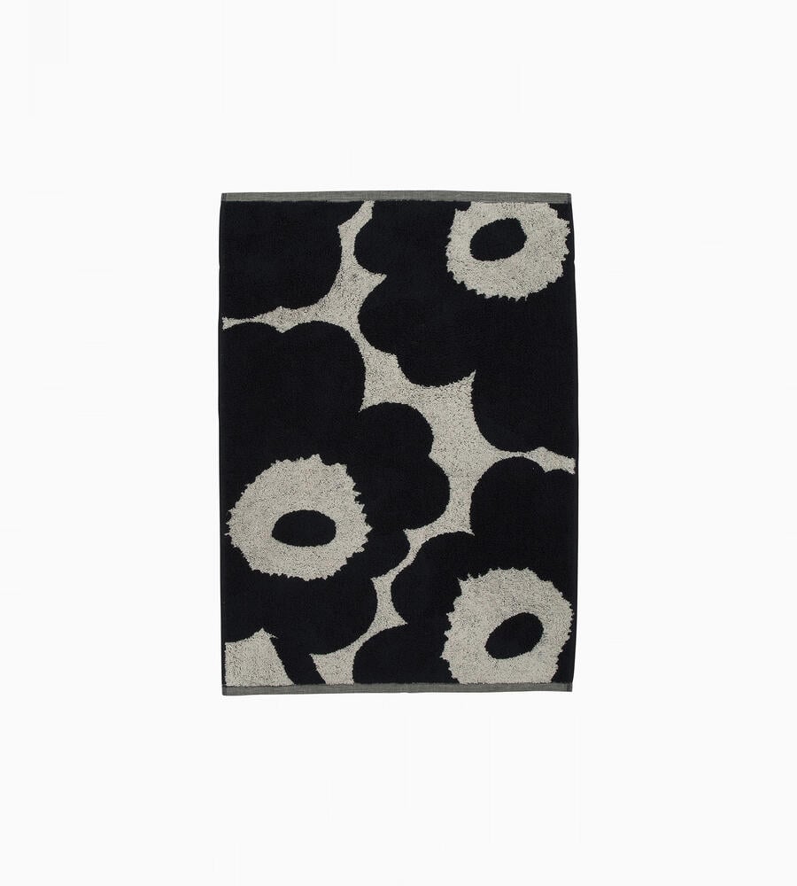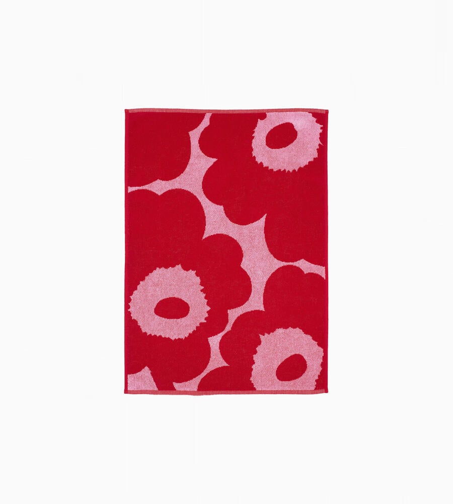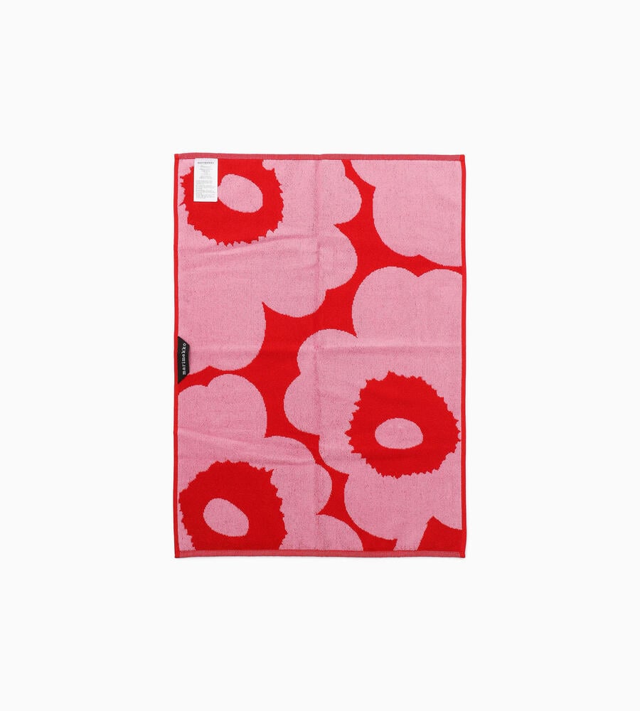 花をモチーフにしたUnikko(ウニッコ)柄を大きく配置したハンドタオル。ふっくら柔らかなコットン100%素材を採用。裏面には、フック掛けに便利なブランドロゴ入りのループ付き。デザイン性と実用性を兼ね備えたアイテムは、プチギフトとしてもおすすめです。