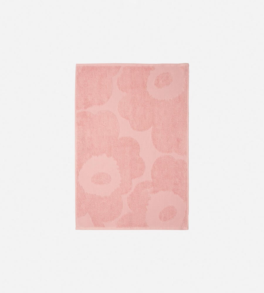 Marimekkoを象徴するUnikko柄のハンドタオル(50x70cm)。表面感のある生地で表現された、花のモチーフが華やかなデザイン。暖かみのあるローズカラーのワントーンで構成されたシンプルなデザイン。コットン100%の肌触りの良い生地感で使いやすく、デイリーに活躍するアイテムです。