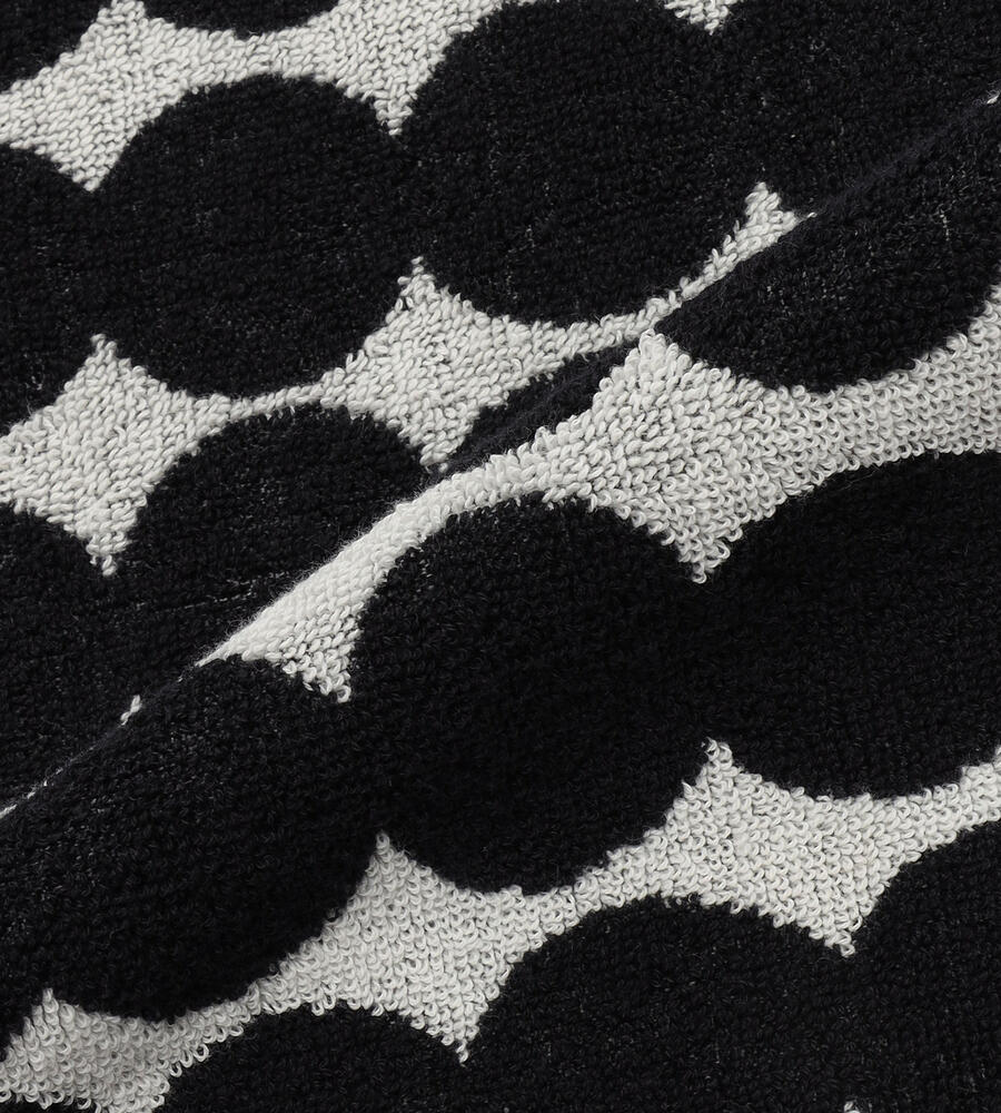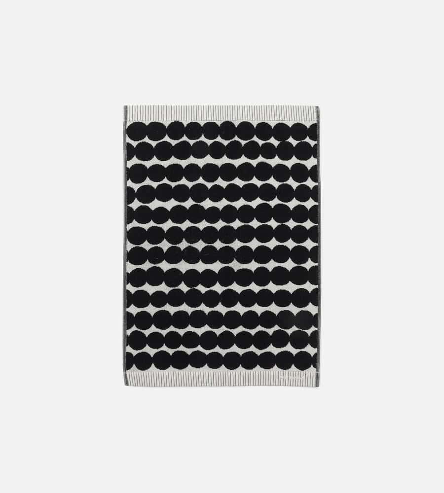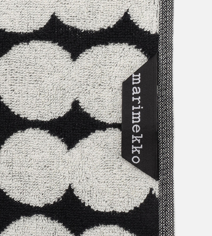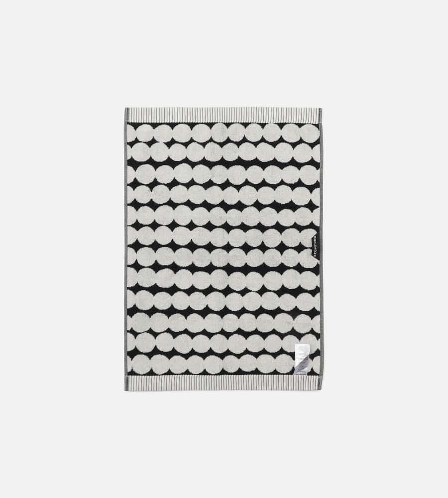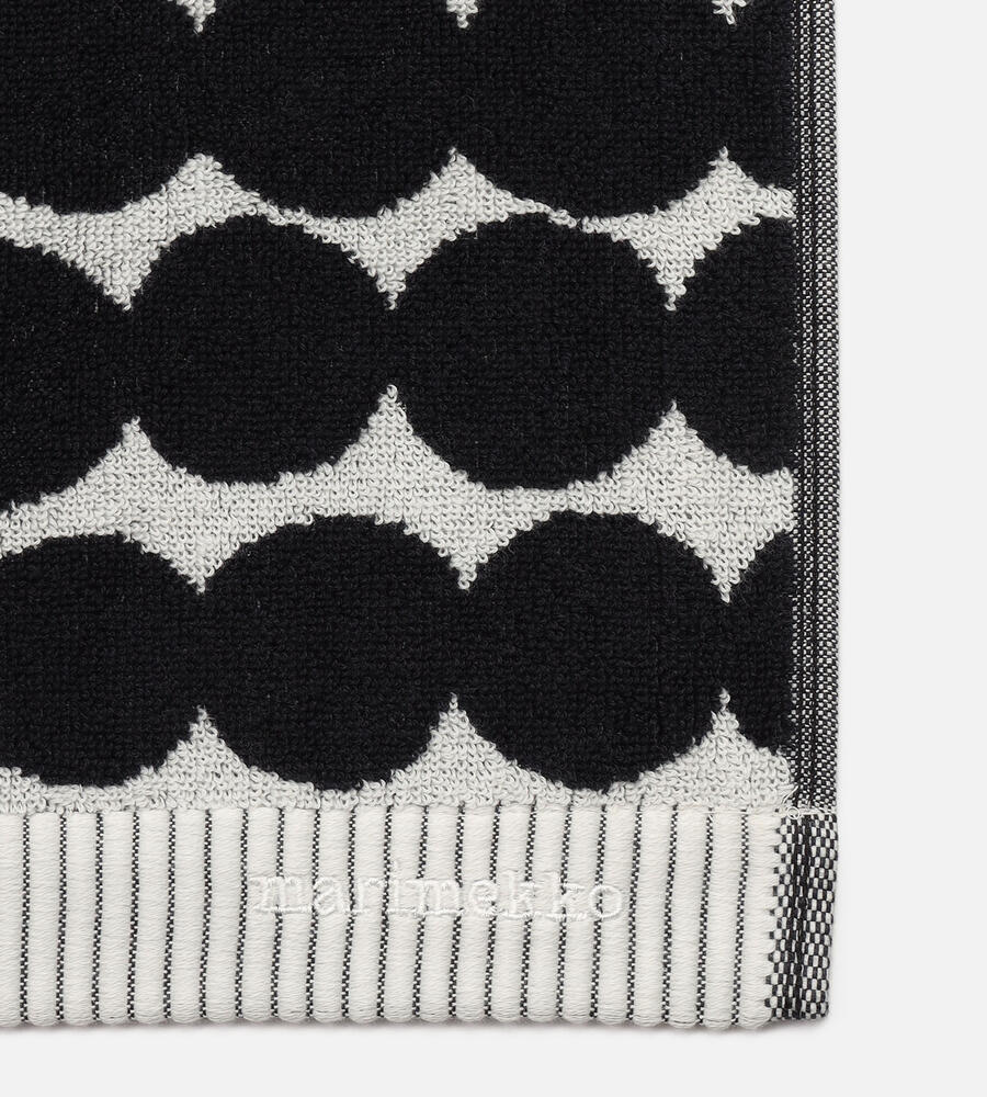 伝統的なフィンランドの織りラグにインスピレーションを得てデザインされたRasymatto柄のハンドタオル(50x70cm)。形の異なるサークルモチーフが並んだグラフィカルでアーティスティックなデザインが魅力。中央裏側にはフックなどにかけやすいブランドタグ付き。デイリーに活躍するアイテムです。