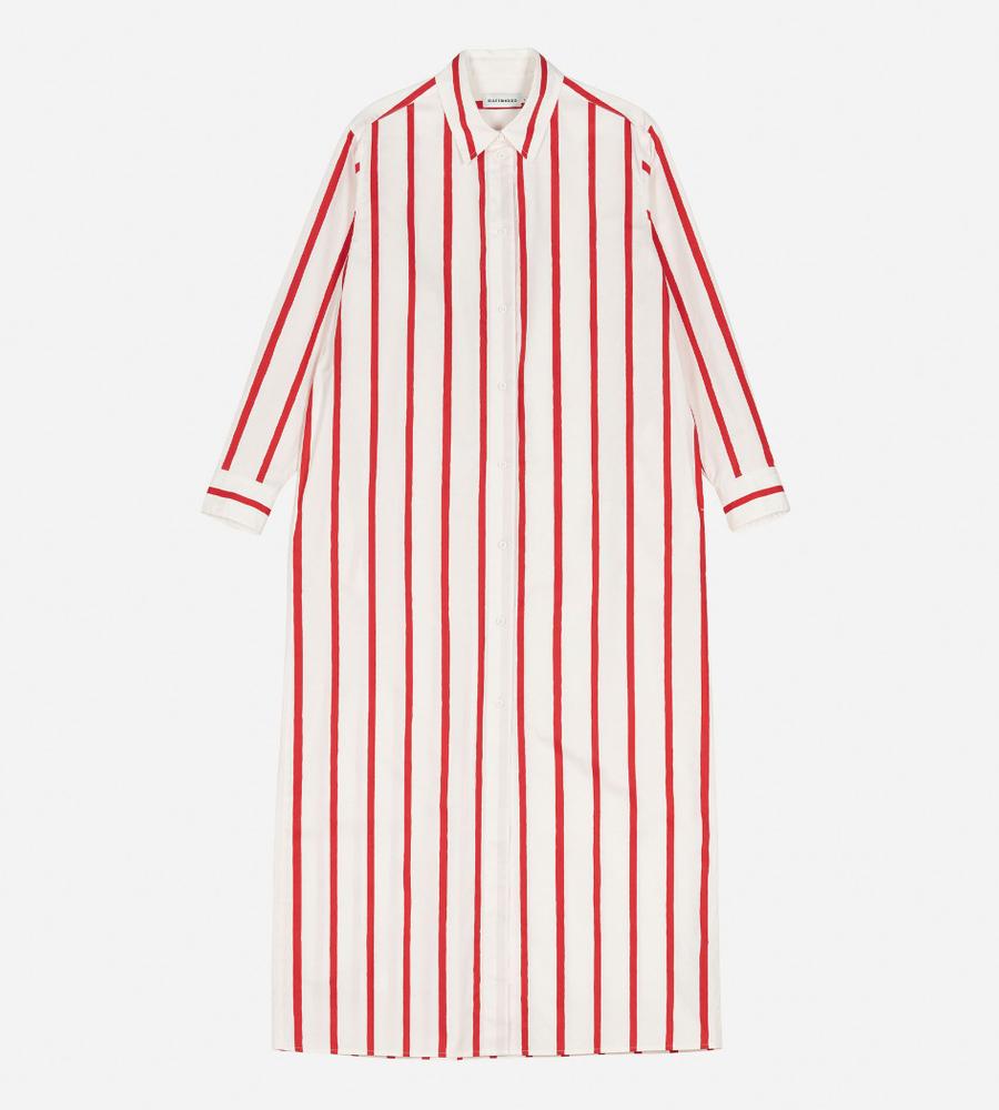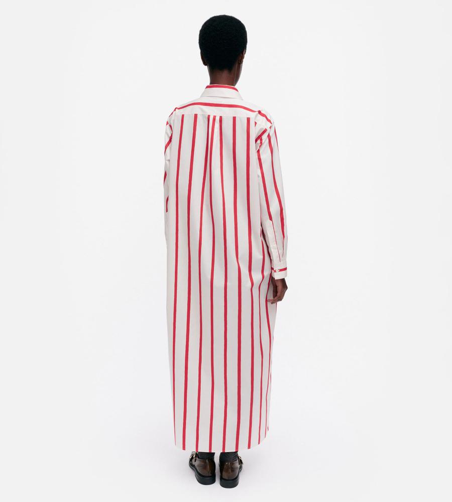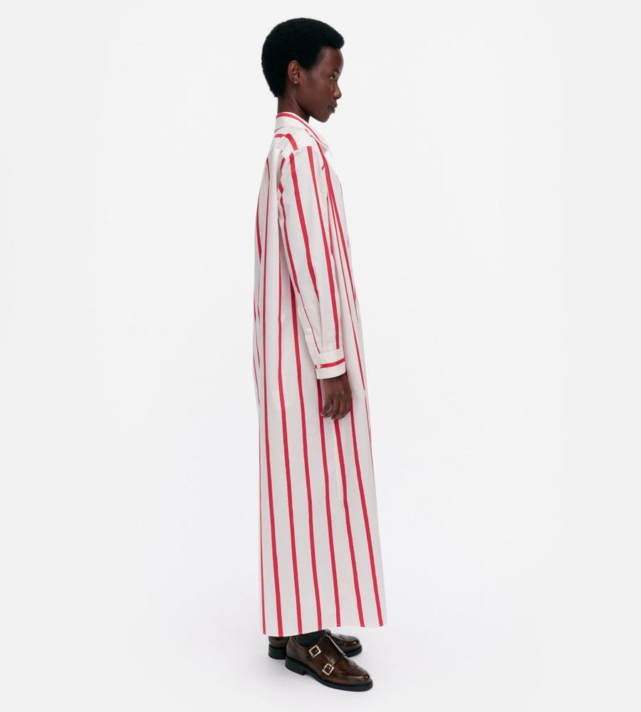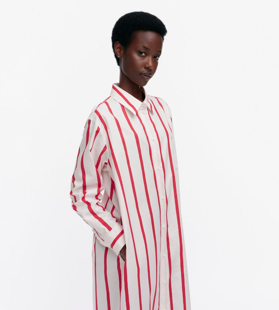 「水牛」を意味する「Puhveli(プゥヴェリ)」柄は、Maija Isolaがデザインを担当しました。オンラインストア限定のステンカラーシャツドレス。共布のベルトつきで、ウエストマークできます。マキシレングスが特徴的。身頃の両サイドにはスリットポケット付きです。ご自宅で手洗い可能なコットン素材。