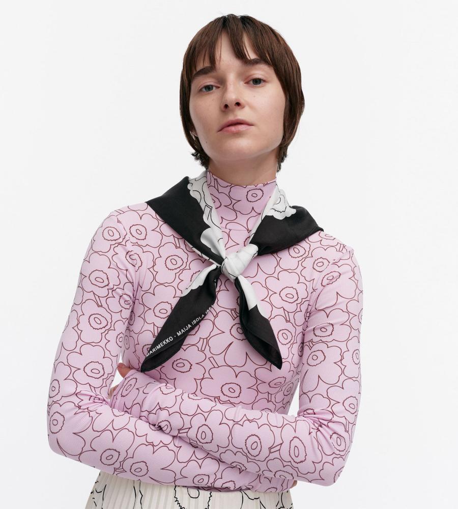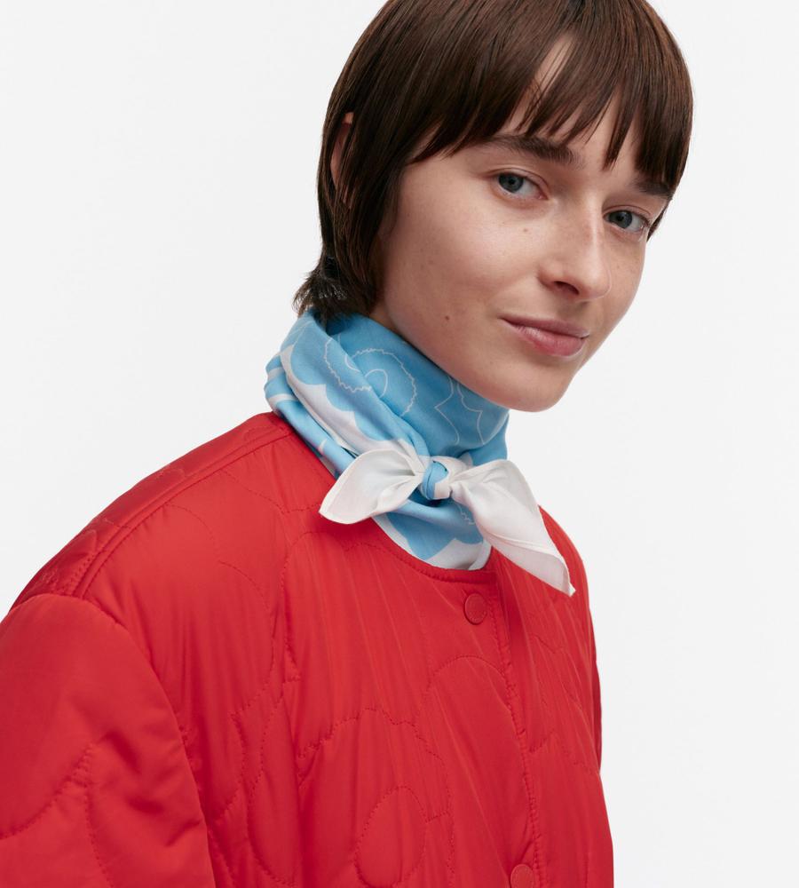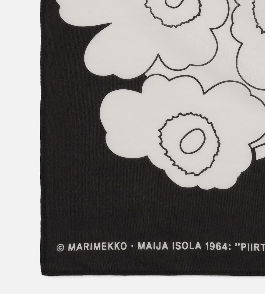 「ドローイングウニッコ」を意味するPiirto Unikko(ピィイルト ウニッコ)柄は、Maija Isolaがデザインを担当しました。とろみのある質感がエレガントなスカーフ。程良いサイズのスクエア型で、様々な用途にお使いいただけます。襟元のポイントに取り入れれば、普段のトップスが見違えます。