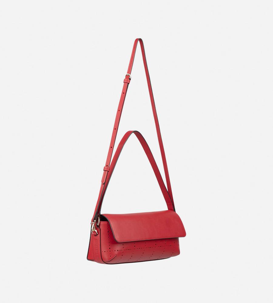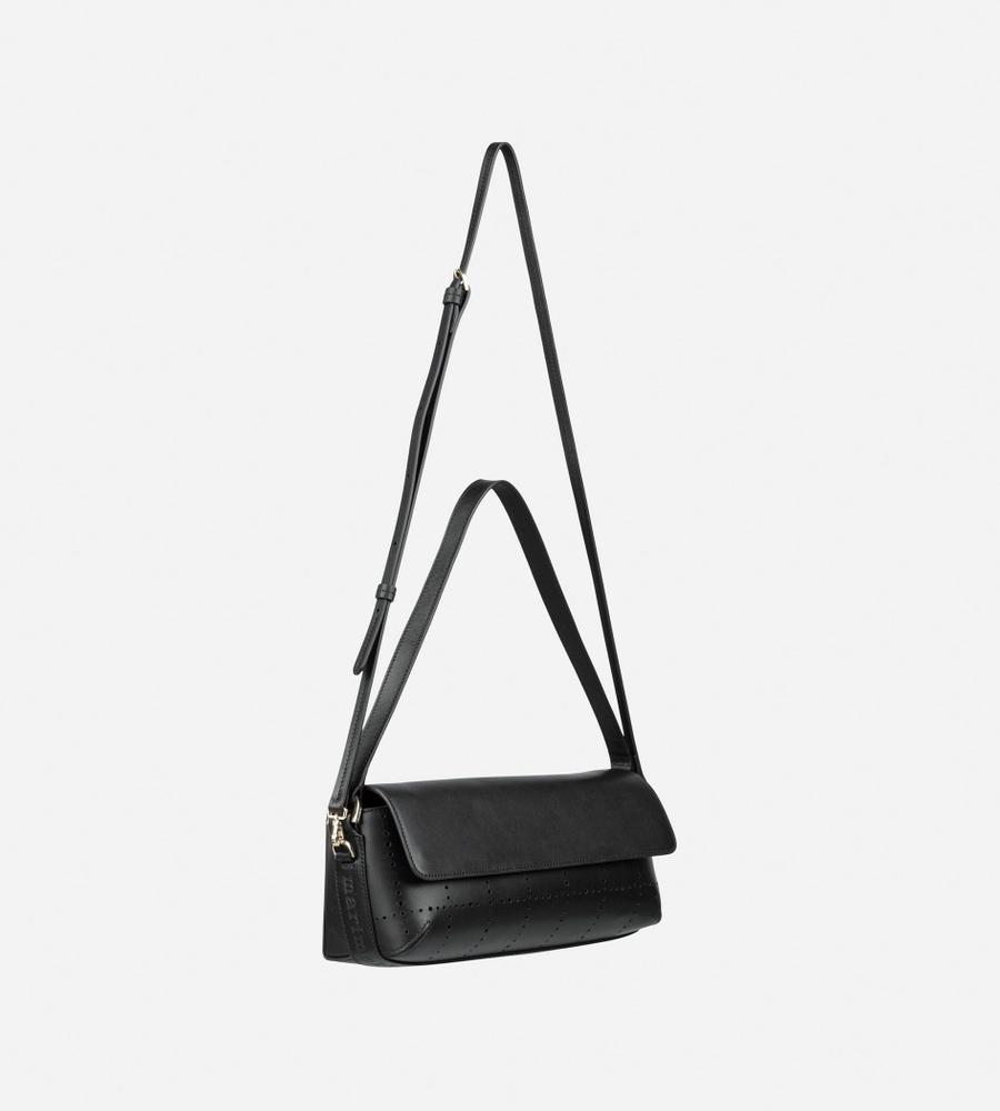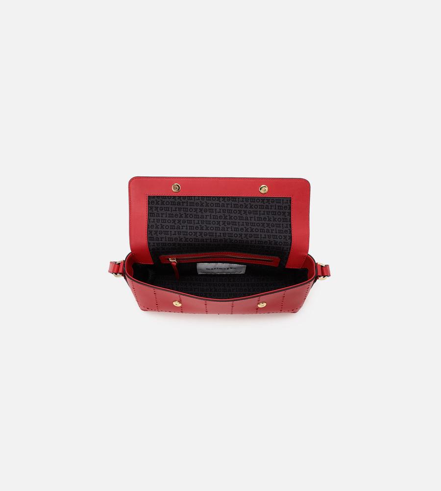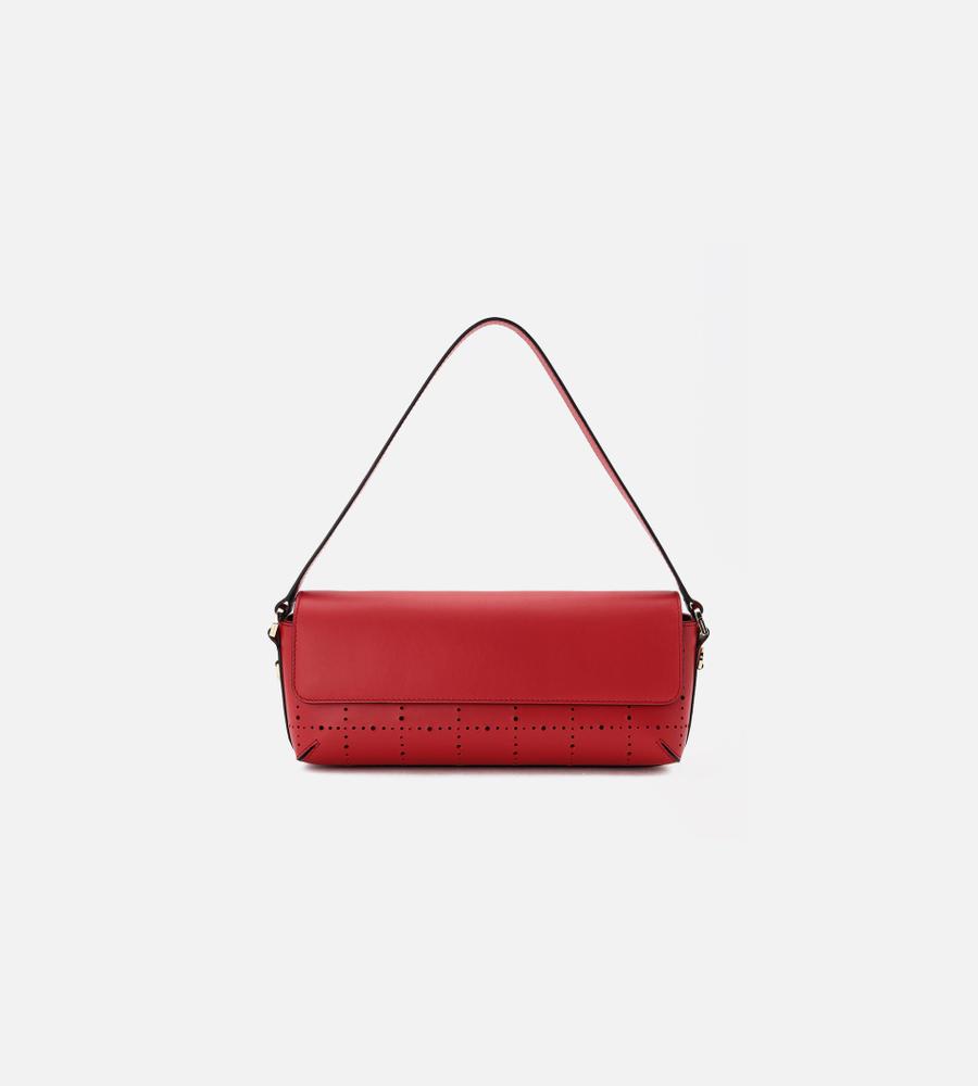 横長フォルムが印象的なフラップバッグ。ハンドルとショルダーストラップが付いた、便利な2WAY仕様となります。煉瓦を意味するテキスタイル「Tiiliskivi」をモチーフにしていて、素材には上質なレザーを採用しました。マチ幅があるため、見た目以上の収納力です。オンオフ兼用で使えて、合わせるスタイルを問いません。