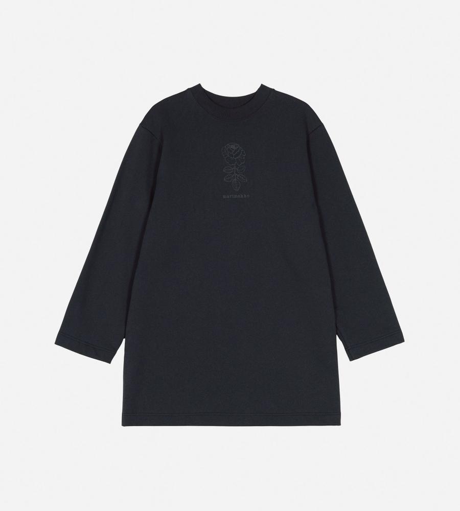 ほんのりフェミニンなムードで着こなせるカットソーチュニック。胸元の花とロゴが、さりげないアクセントに。どんなボトムにも合わせやすく、幅広いコーディネートを楽しめます。