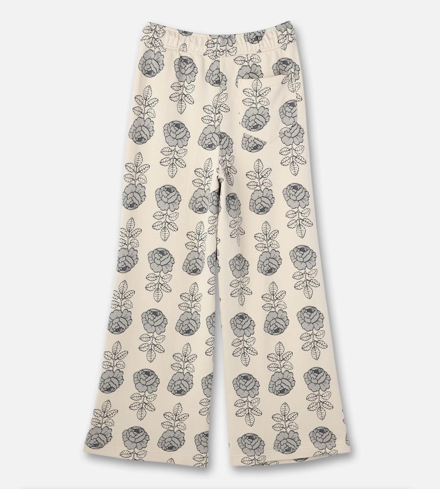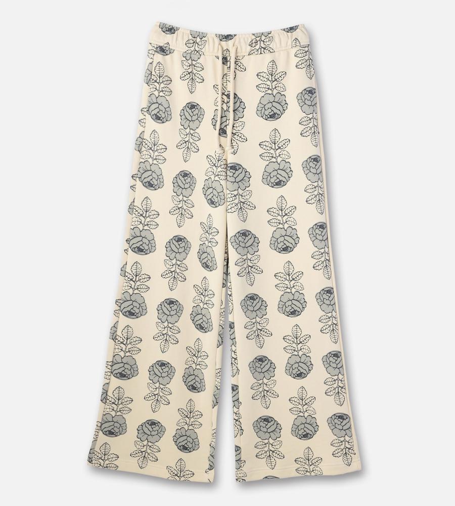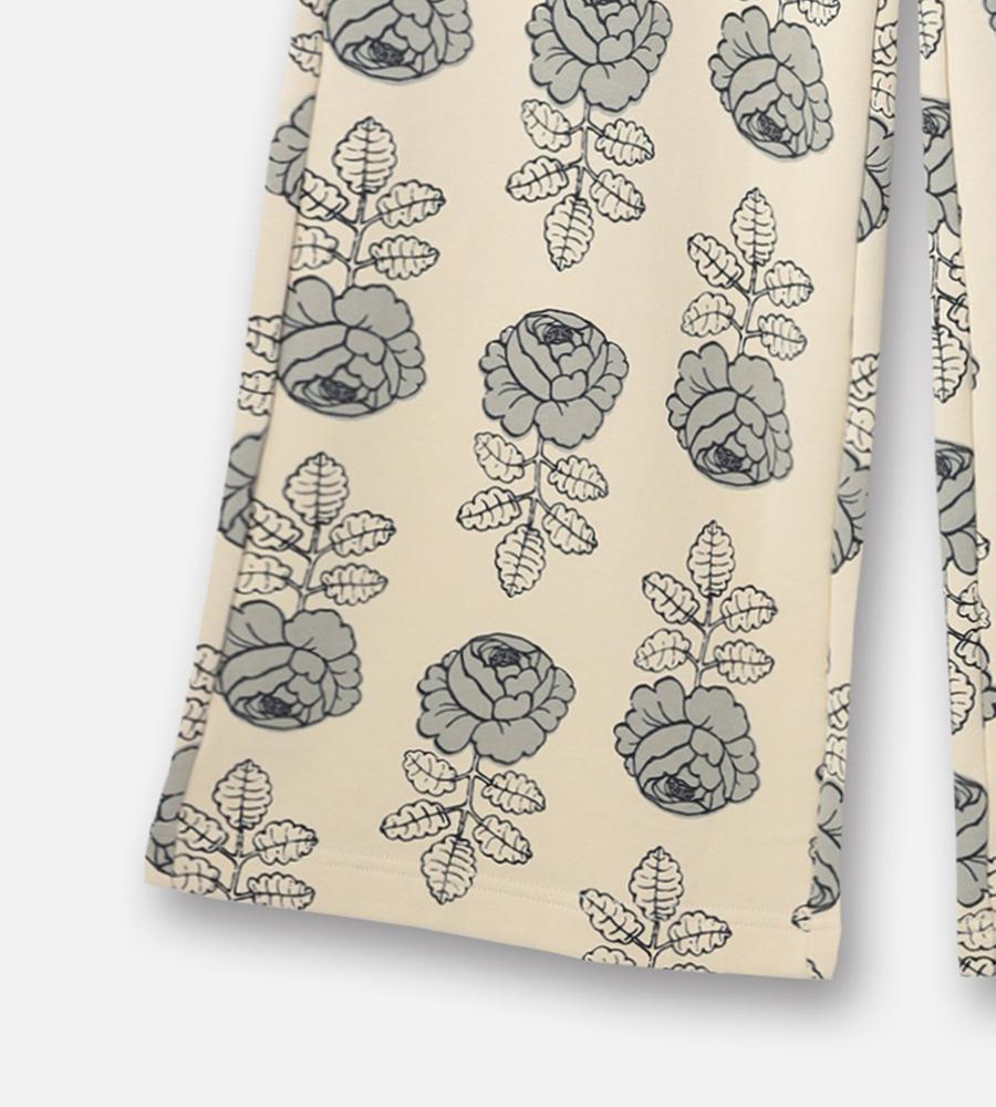 ソフトな肌ざわりや動きやすさがヤミツキになるスウェットパンツ。バラの総柄とワイドシルエットで、モードな洒落感をプラスしました。両側とヒップにもポケットつきで、外出するときにも便利。
