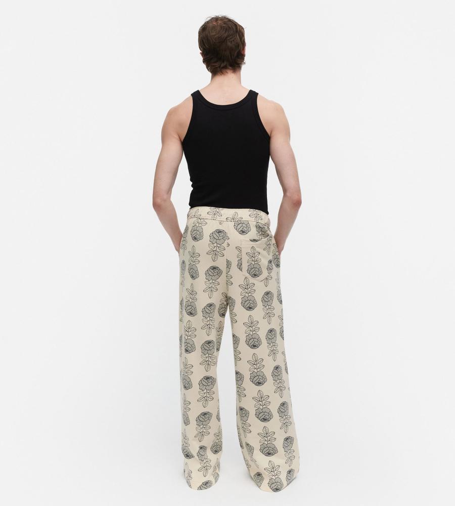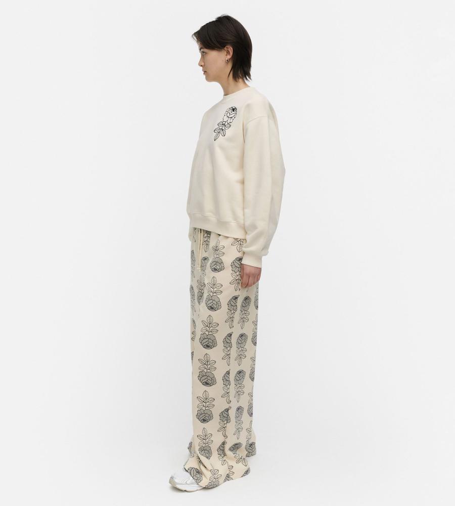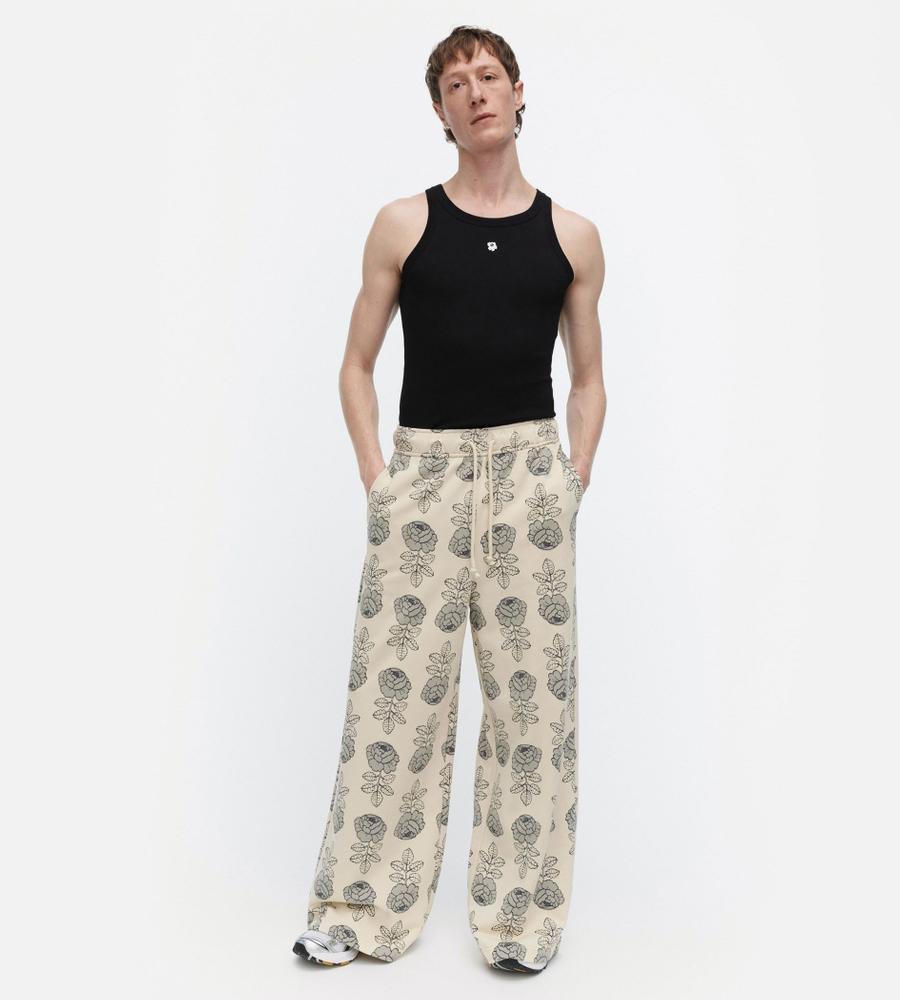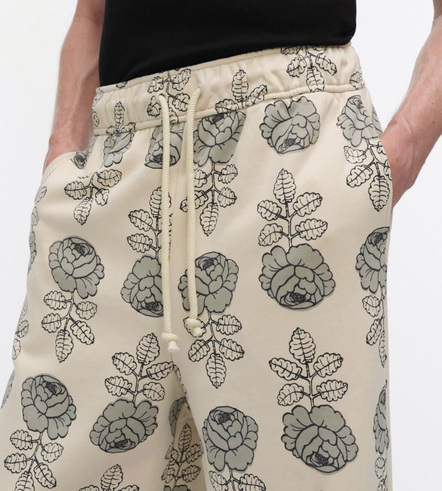ソフトな肌ざわりや動きやすさがヤミツキになるスウェットパンツ。バラの総柄とワイドシルエットで、モードな洒落感をプラスしました。両側とヒップにもポケットつきで、外出するときにも便利。