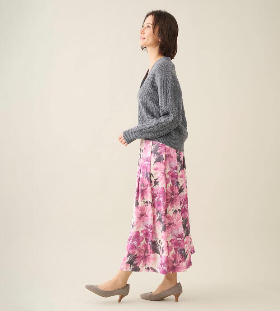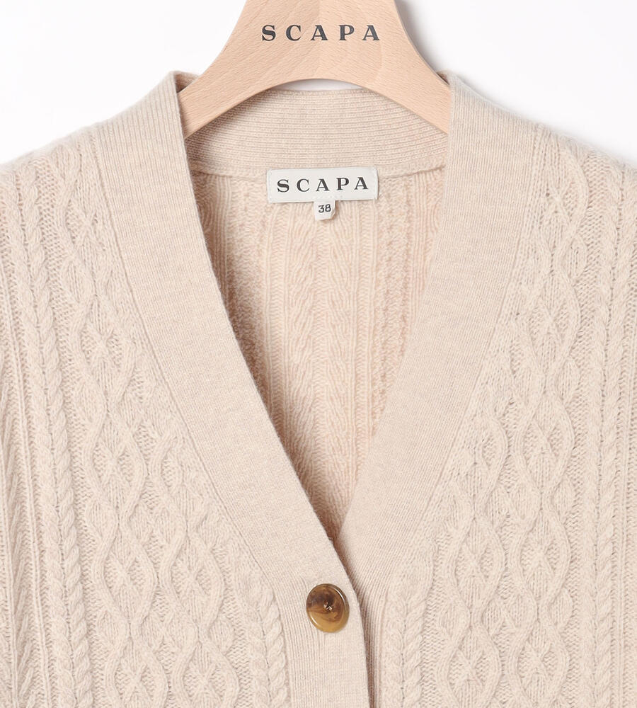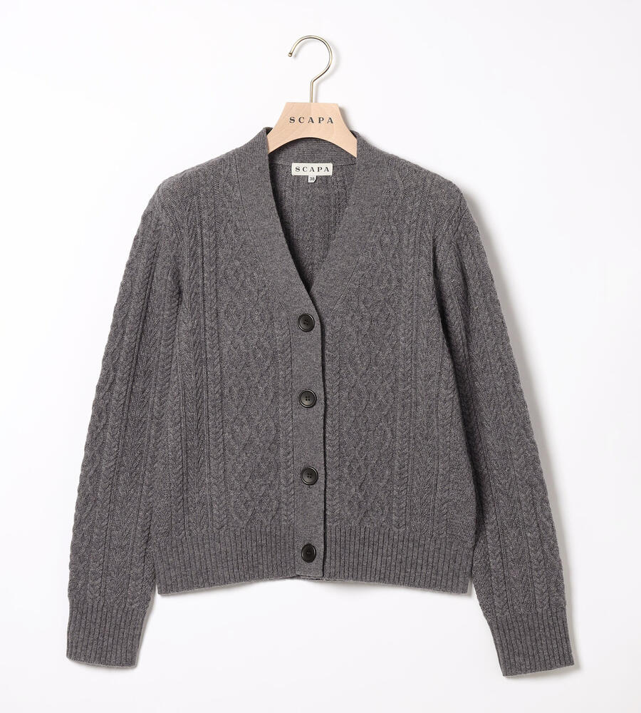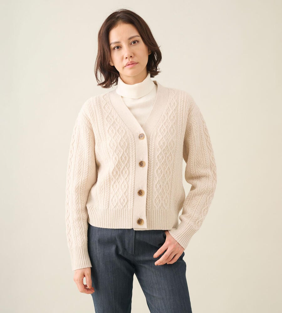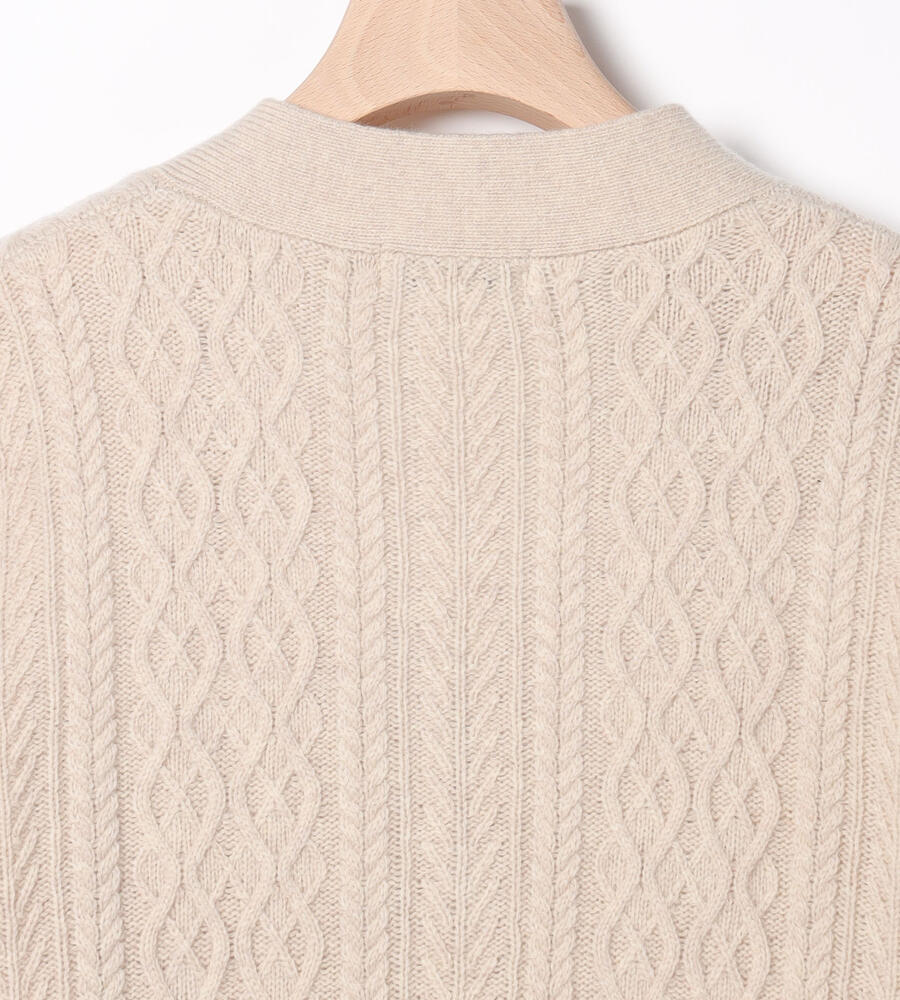 ノスタルジックな雰囲気を纏った、ケーブル編みのニットカーディガン。身頃は真っ直ぐ落ちるストレートシルエットで、Vネックがすっきり感をプラスします。ボタンはやや大きめにして、ベーシックスタイルのアクセントに。ほどよいボリュームで、肌寒くなったときの羽織りに重宝します。プリーツスカートやジーンズなど、幅広いボトムに合わせられるアイテムです。