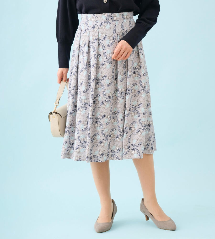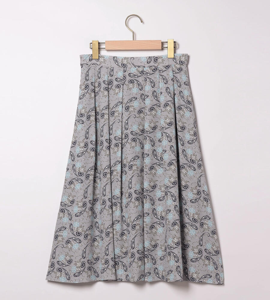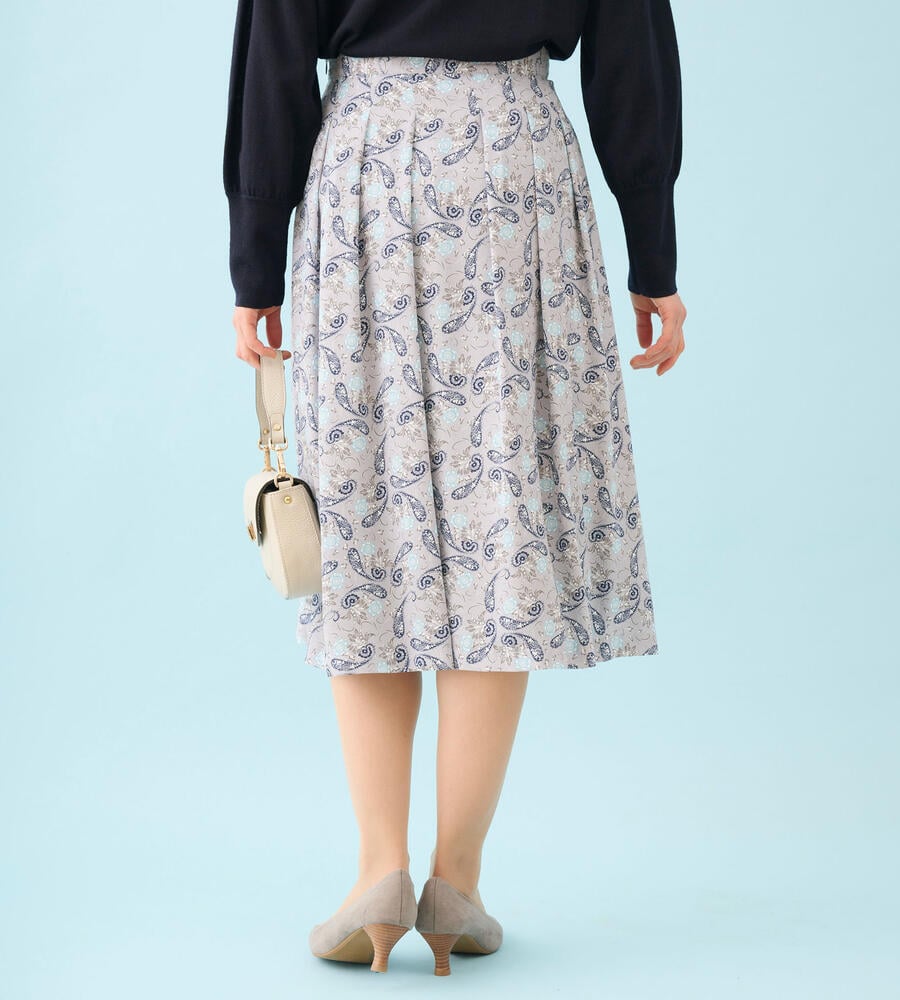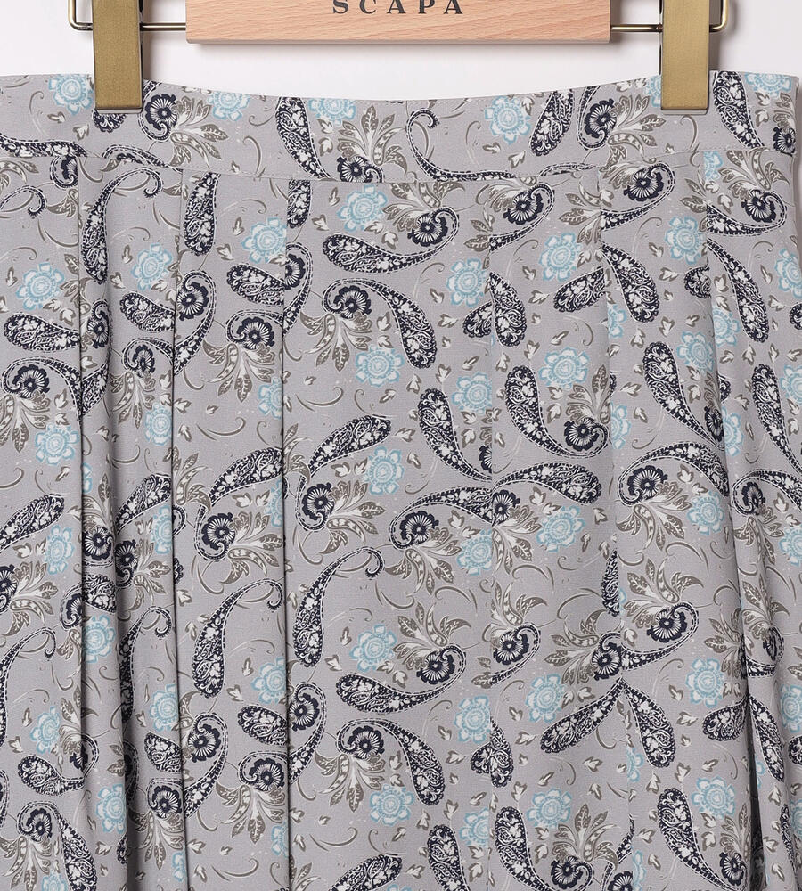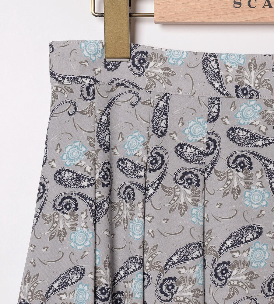 オリエンタルなペイズリープリントを全身に纏ったフレアスカート。まるでフラワーモチーフのようにも見えるプリントが、着こなしをフェミニンに彩ります。膝が隠れる程度の着丈と、ゆったりと広がるフレアシルエットは優美でエレガント。足元にロングブーツなどを合わせると、今年らしいコーディネートが完成します。
