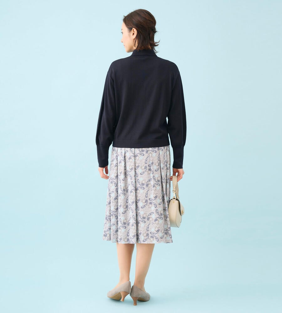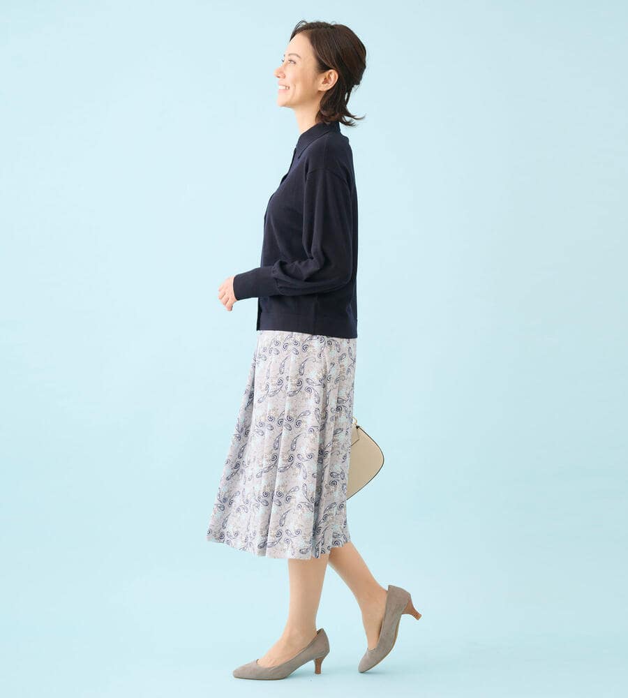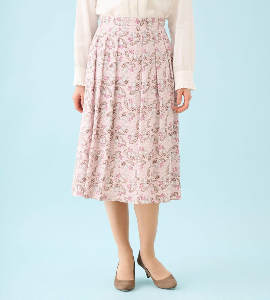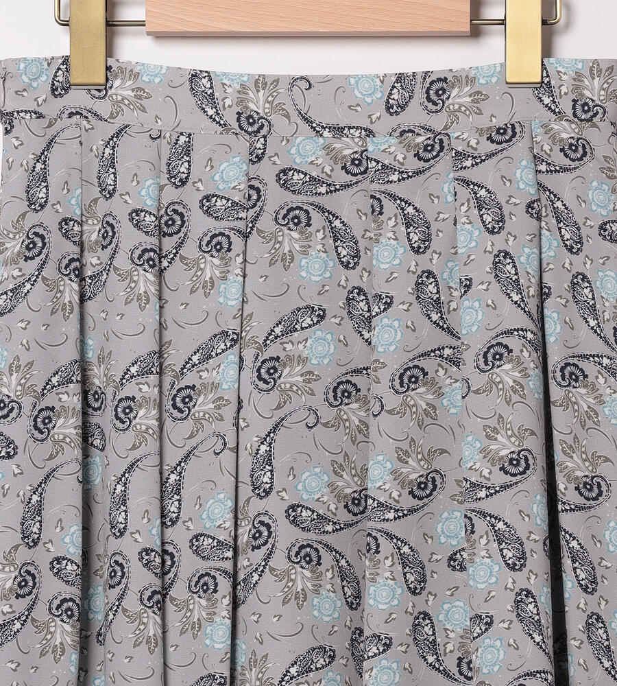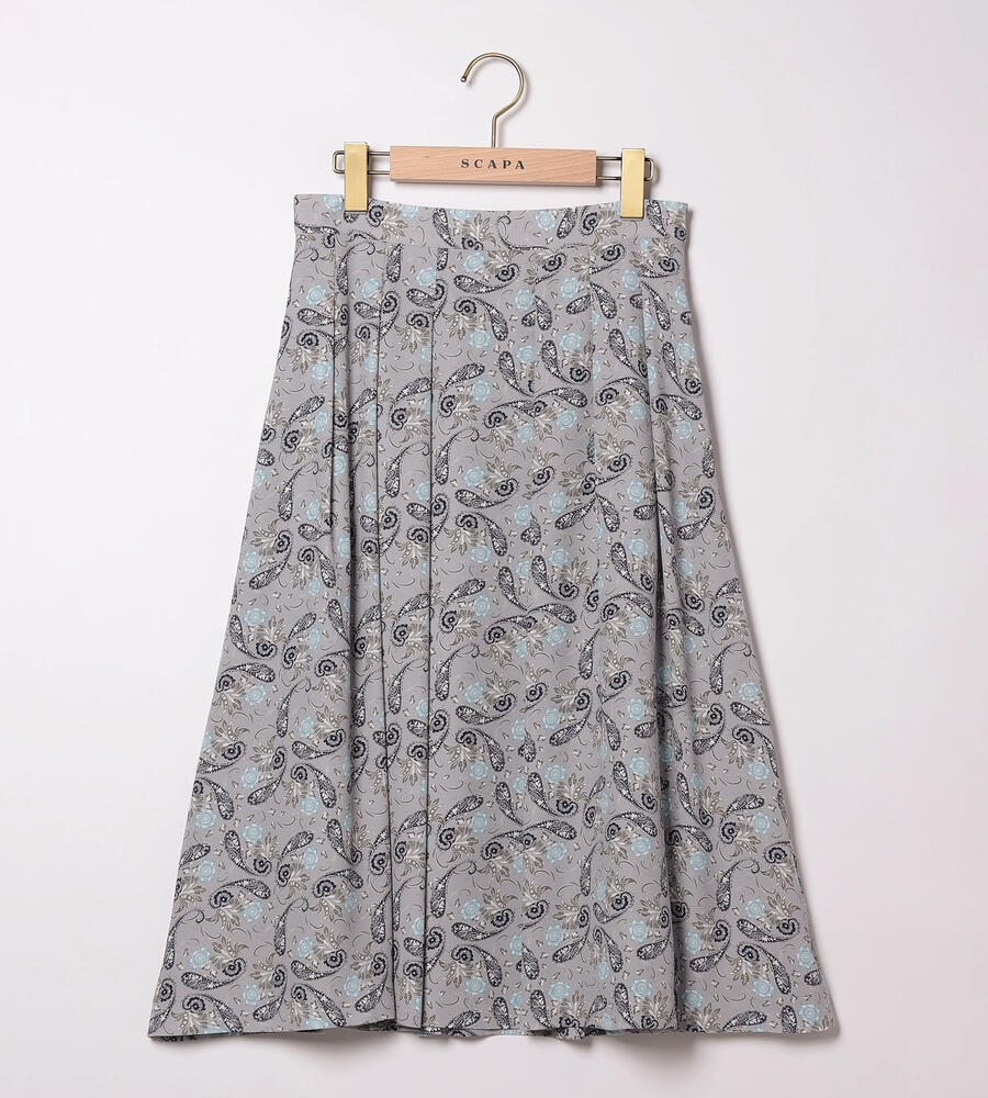 オリエンタルなペイズリープリントを全身に纏ったフレアスカート。まるでフラワーモチーフのようにも見えるプリントが、着こなしをフェミニンに彩ります。膝が隠れる程度の着丈と、ゆったりと広がるフレアシルエットは優美でエレガント。足元にロングブーツなどを合わせると、今年らしいコーディネートが完成します。